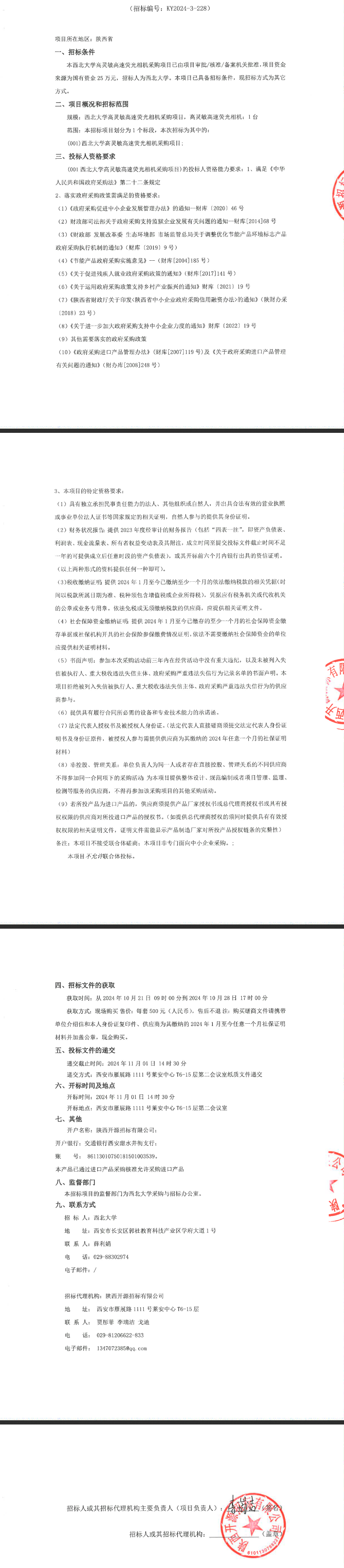 乐投平台高灵敏高速荧光相机采购项目竞争性磋商公告 作者: 编辑:采购与招标办公室 时间:2024-10-21 原公告链接:http://bulletin.sntba.com/biddingBulletin/2024-10-21/1932717.html