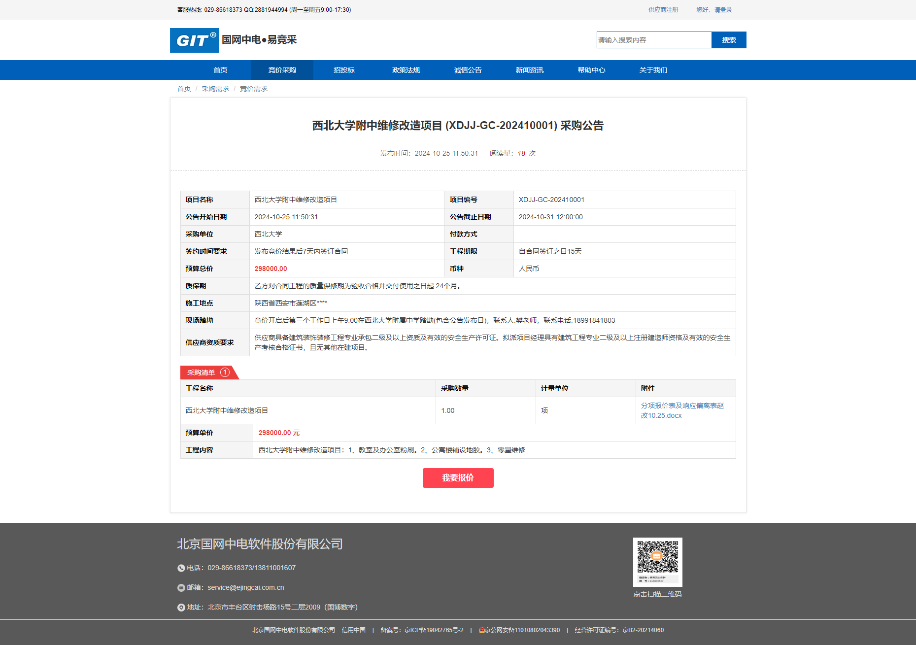 乐投平台附中维修改造项目 (XDJJ-GC-202410001) 采购公告