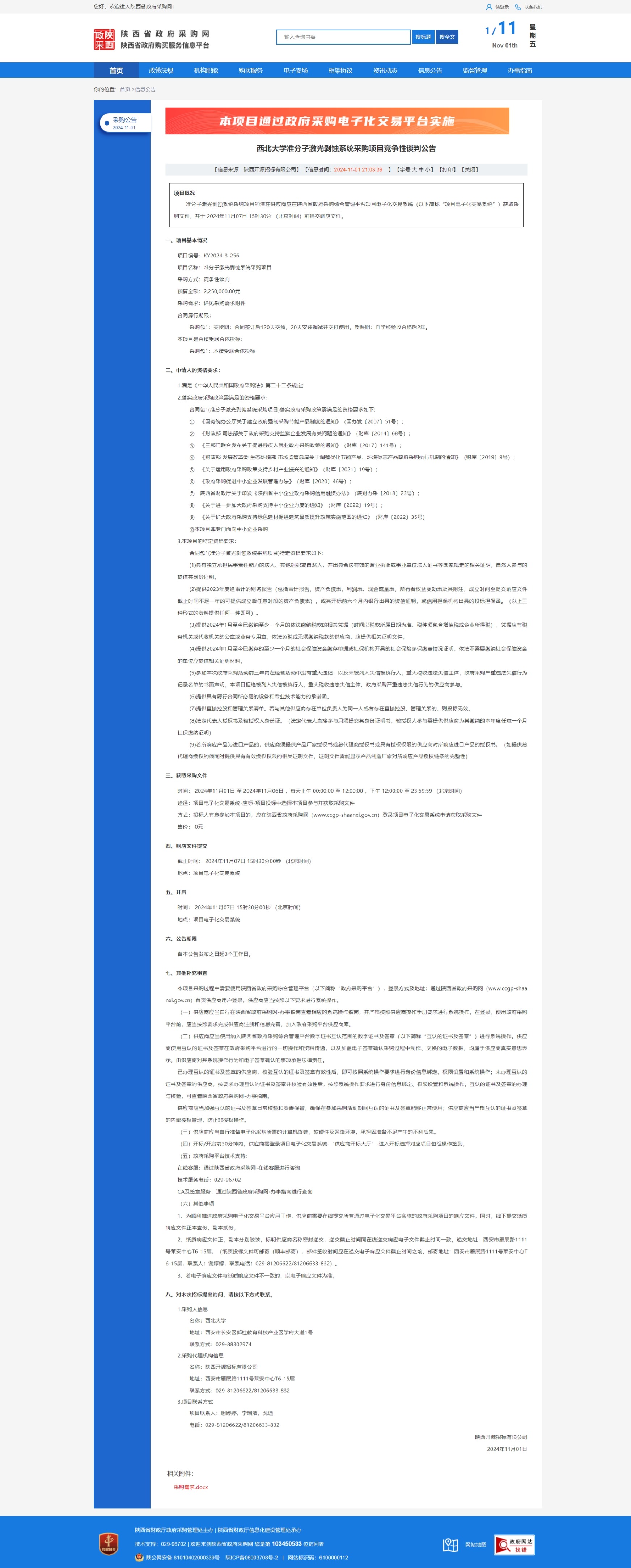 乐投平台准分子激光剥蚀系统采购项目竞争性谈判公告 作者: 编辑: 时间:2024-11-01 原公告链接:https://www.ccgp-shaanxi.gov.cn/freecms/site/shaanxi/ggxx/info/2024/8a69c251921857370192e7cd1e6468e7.html?noticeType=001013¬iceId=41ff9c47-9853-11ef-8063-08c0eb20c666