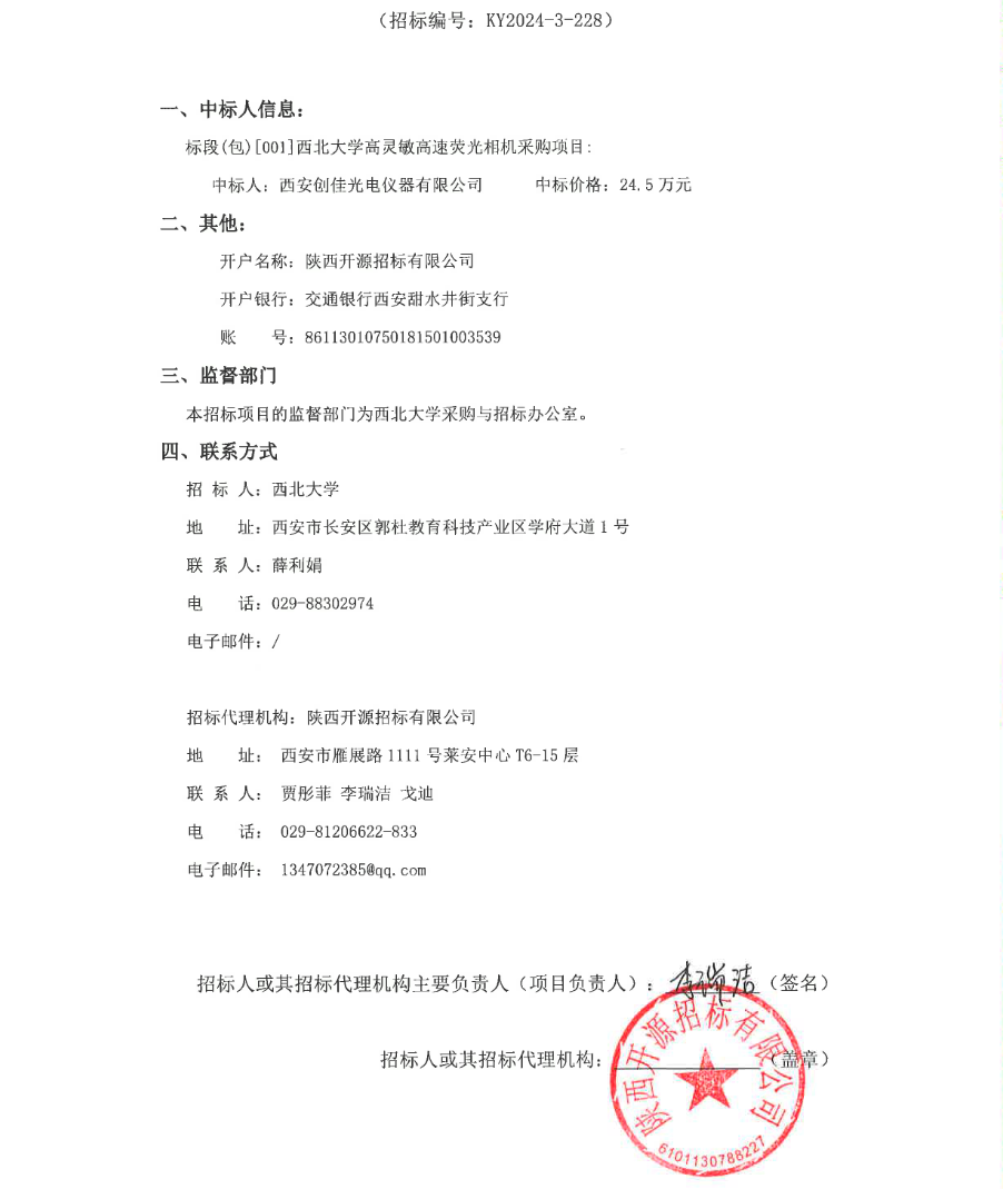 乐投平台高灵敏高速荧光相机采购项目成交公告 作者: 编辑:采购与招标办公室 时间:2024-11-04 原公告链接:http://bulletin.sntba.com/resultBulletin/2024-11-04/1978662.html