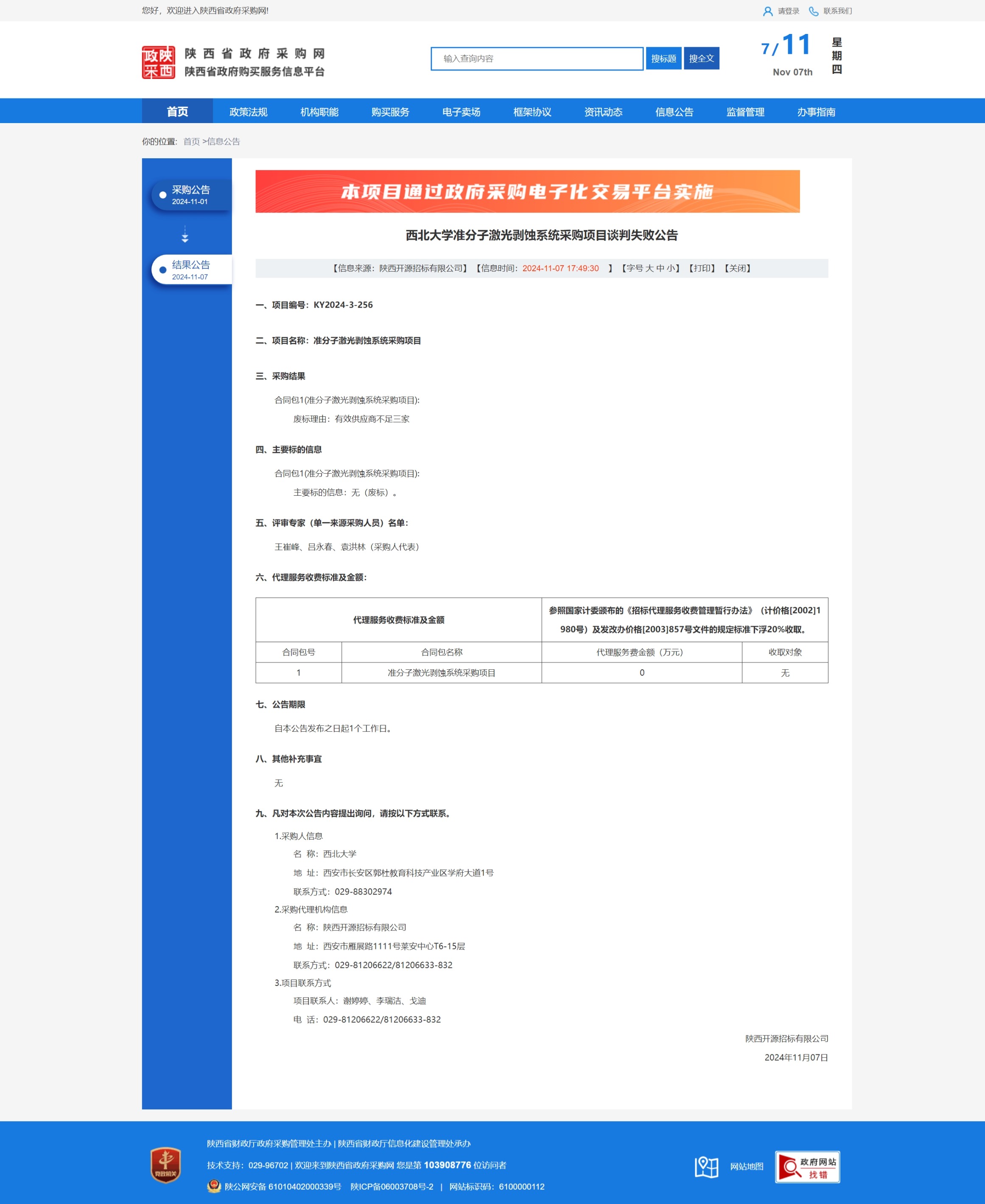 乐投平台准分子激光剥蚀系统采购项目谈判失败公告 作者: 编辑:采购与招标办公室 时间:2024-11-07 原公告链接:https://www.ccgp-shaanxi.gov.cn/freecms/site/shaanxi/ggxx/info/2024/8a69c44e9218572b019305fc5c7645f4.html?noticeType=001006¬iceId=23aeceff-9cef-11ef-8063-08c0eb20c666