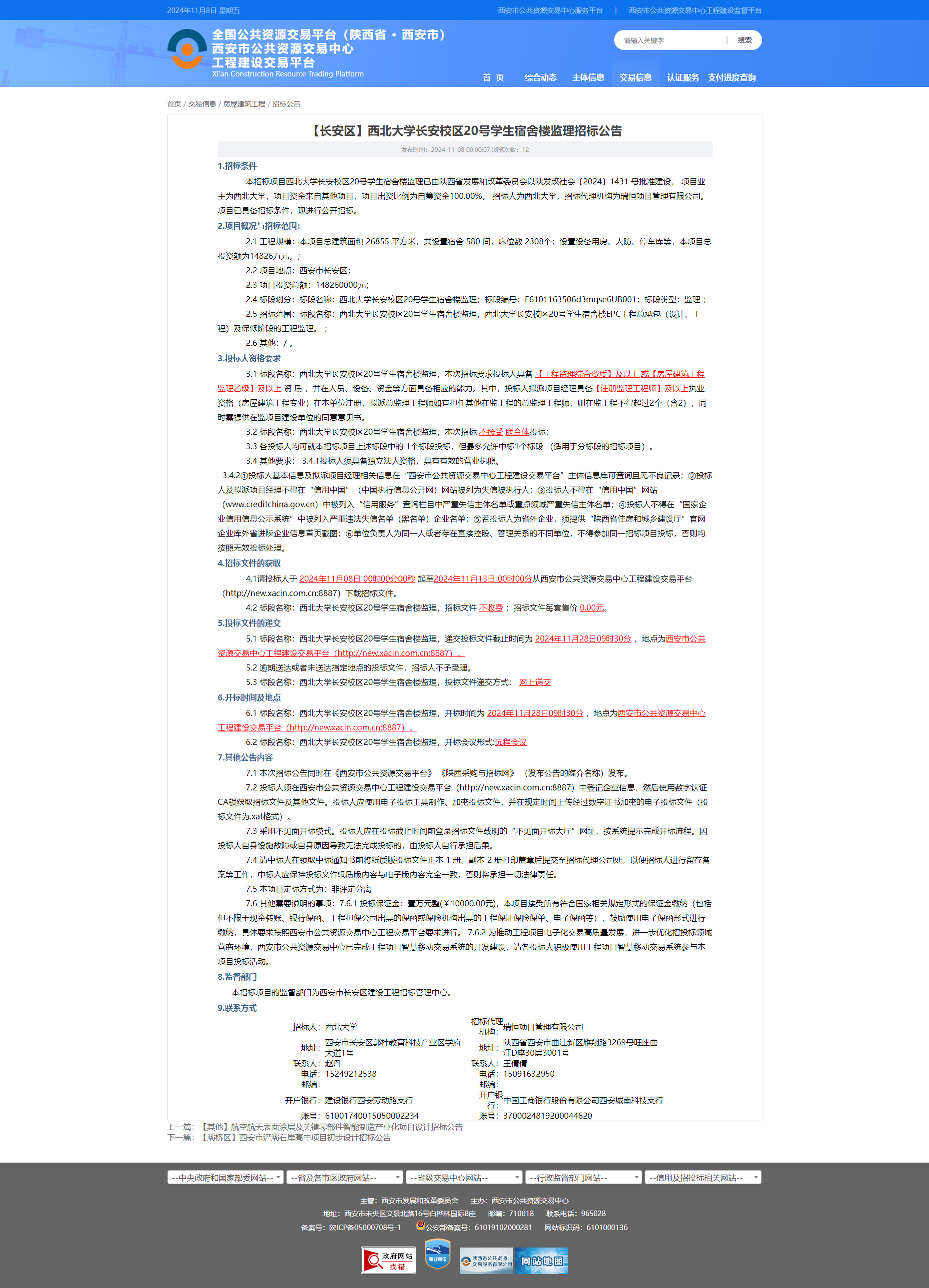 乐投平台长安校区20号学生宿舍楼监理招标公告