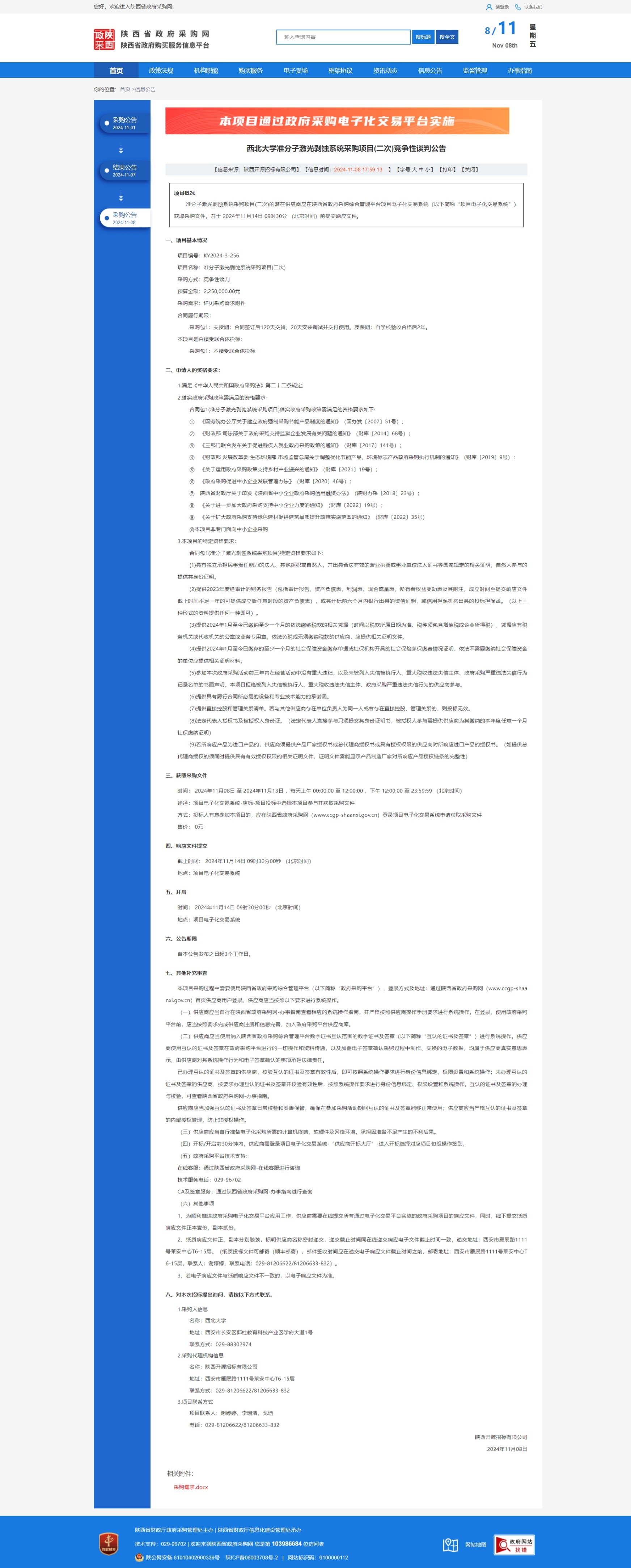 乐投平台准分子激光剥蚀系统采购项目(二次)竞争性谈判公告 作者: 编辑:薛利娟 时间:2024-11-08 原公告链接:https://www.ccgp-shaanxi.gov.cn/freecms/site/shaanxi/ggxx/info/2024/8a69c44e9218572b01930b11a18f0bb4.html?noticeType=001013¬iceId=aa4ef12c-9db9-11ef-8063-08c0eb20c666