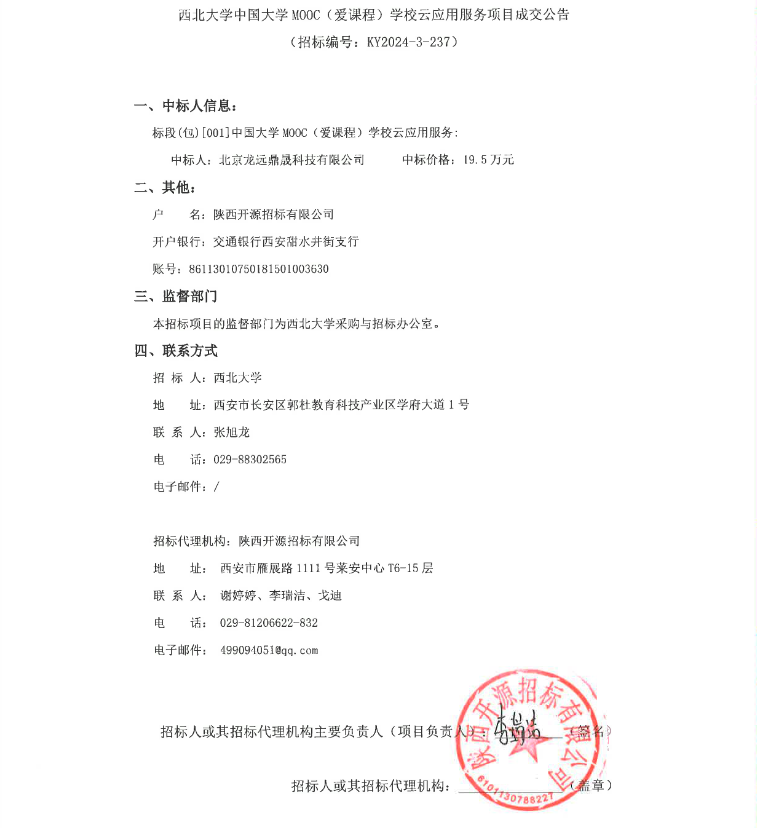 乐投平台中国大学MOOC(爱课程)学校云应用服务项目成交公告