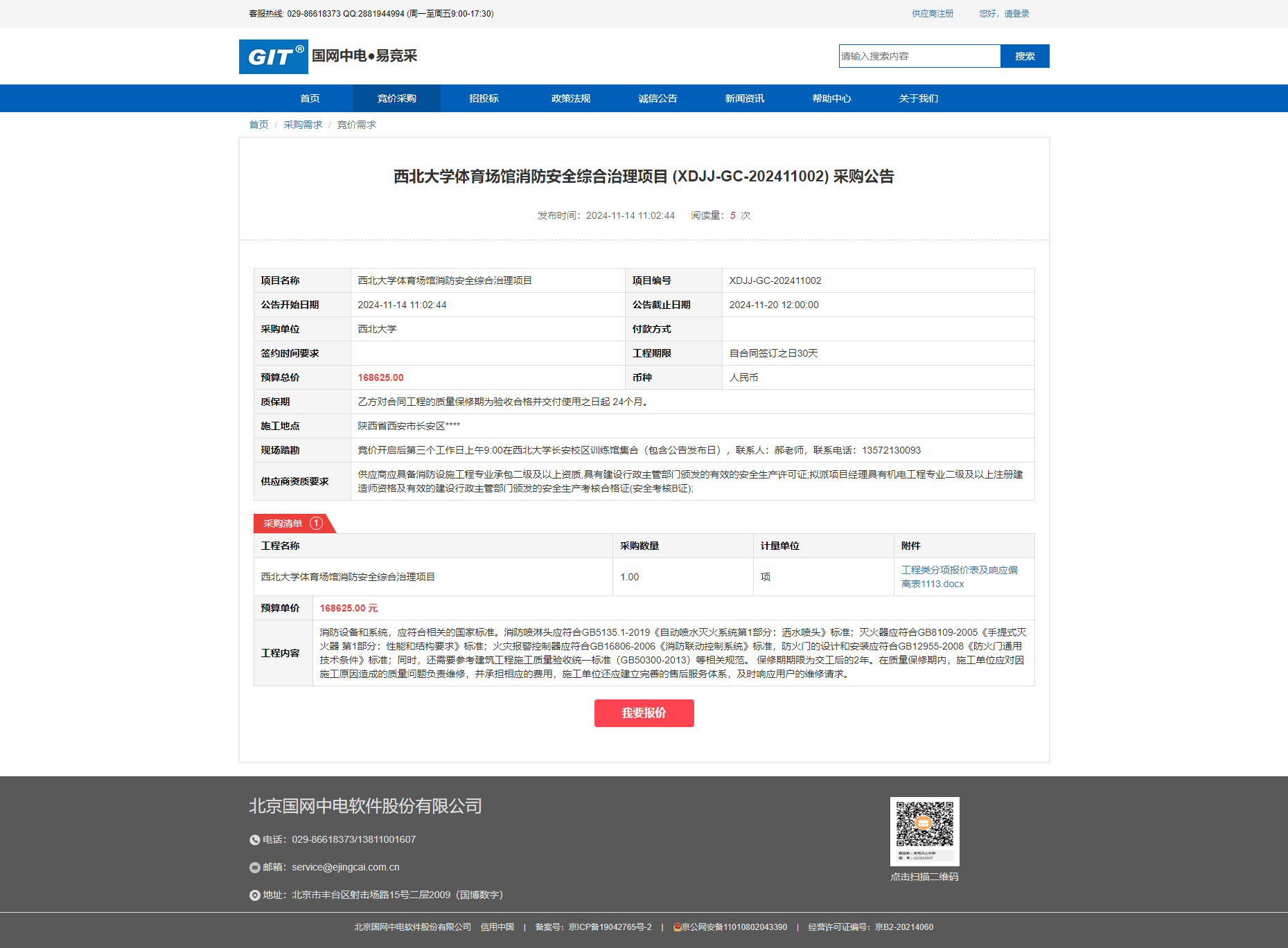 乐投平台体育场馆消防安全综合治理项目 (XDJJ-GC-202411002) 采购公告