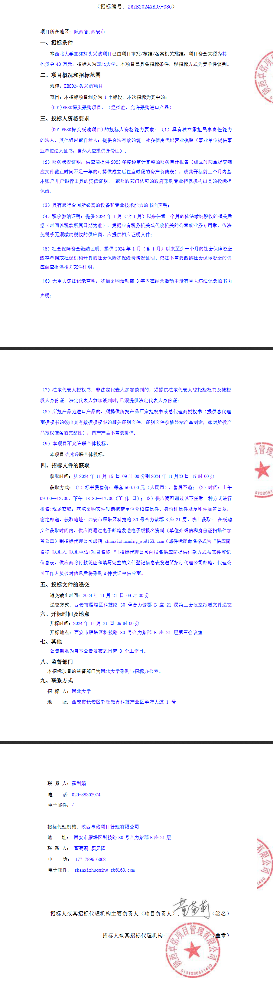 乐投平台EBSD探头采购项目竞争性谈判公告 作者: 编辑:薛利娟 时间:2024-11-15 原公告链接:http://bulletin.sntba.com/biddingBulletin/2024-11-15/1984610.html