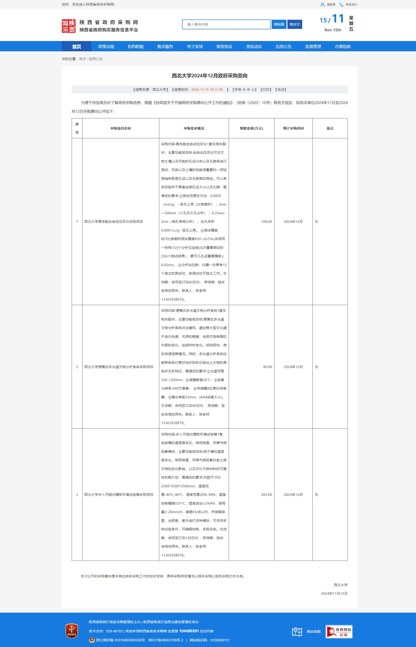 乐投平台2024年12月政府采购意向(丝绸之路文化遗产保护实验平台2) 作者: 编辑:薛利娟 时间:2024-11-15 原公告链接:https://www.ccgp-shaanxi.gov.cn/freecms/site/shaanxi/ggxx/info/2024/8a69c037932429a301932f7f7f544a1e.html?noticeType=59¬iceId=dd1c3365-a343-11ef-8063-08c0eb20c666