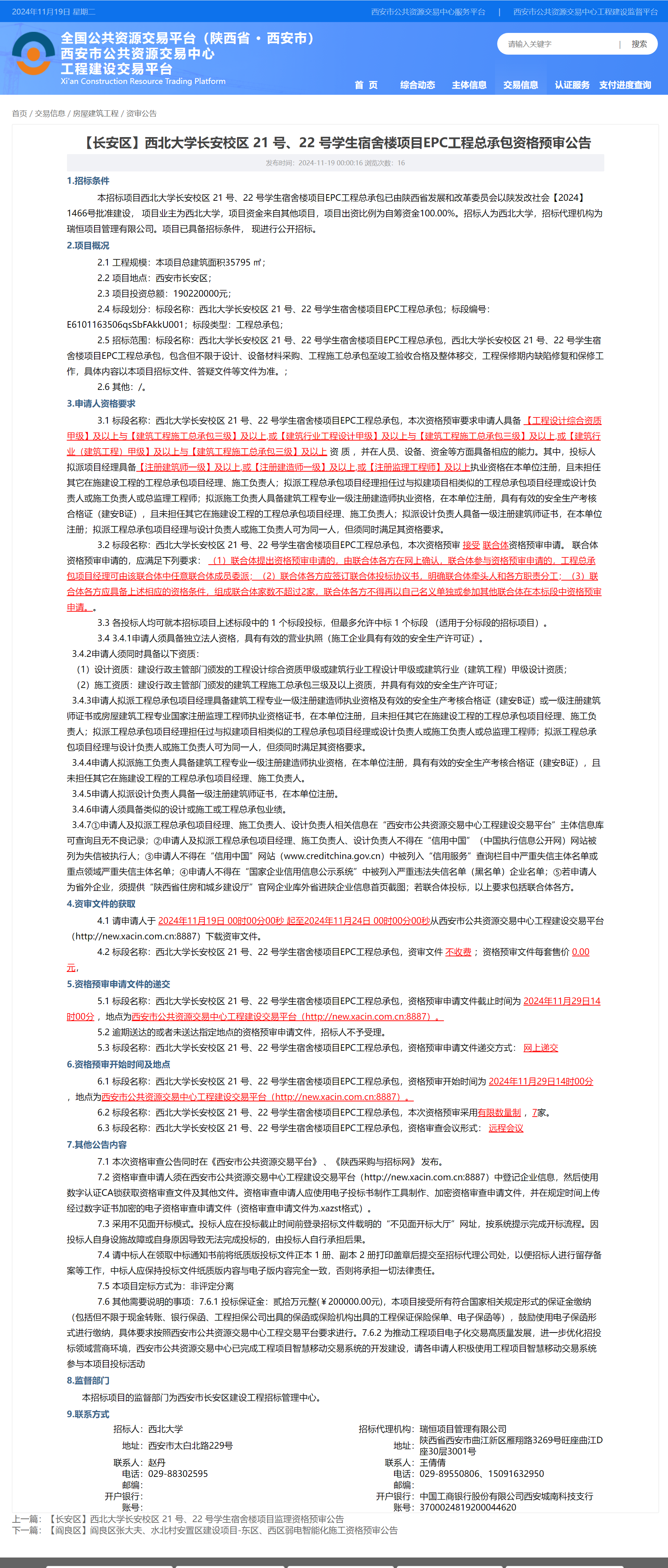 乐投平台长安校区21号、22号学生宿舍楼项目EPC工程总承包资格预审公告
