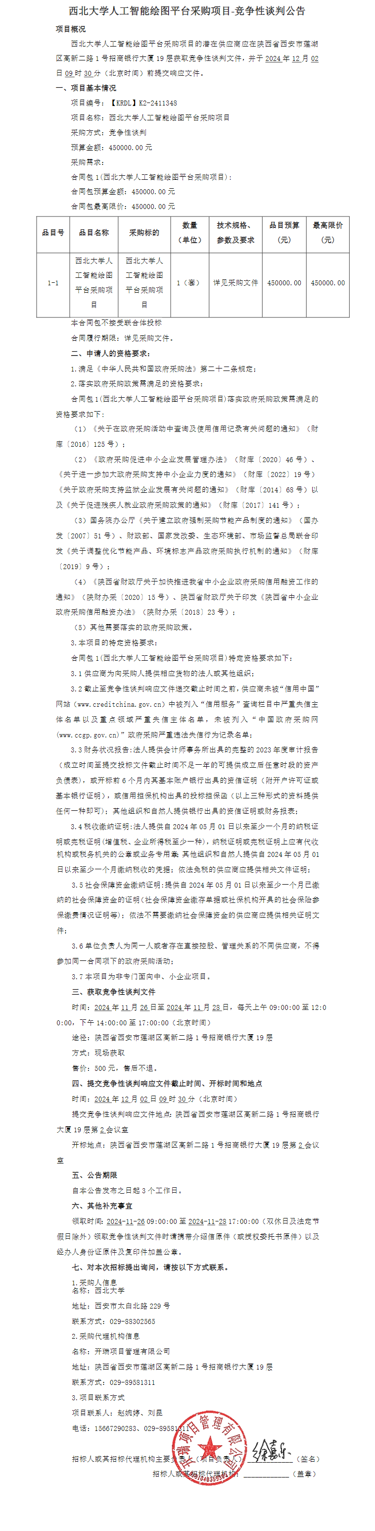 乐投平台人工智能绘图平台采购项目竞争性谈判公告