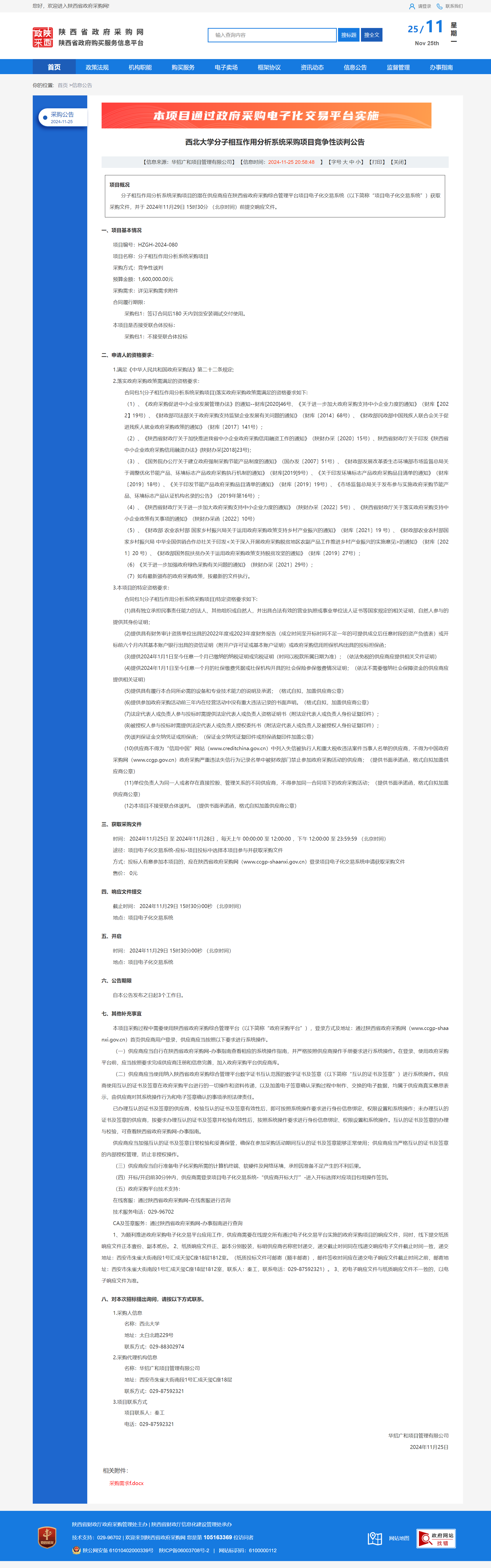 乐投平台分子相互作用分析系统采购项目竞争性谈判公告