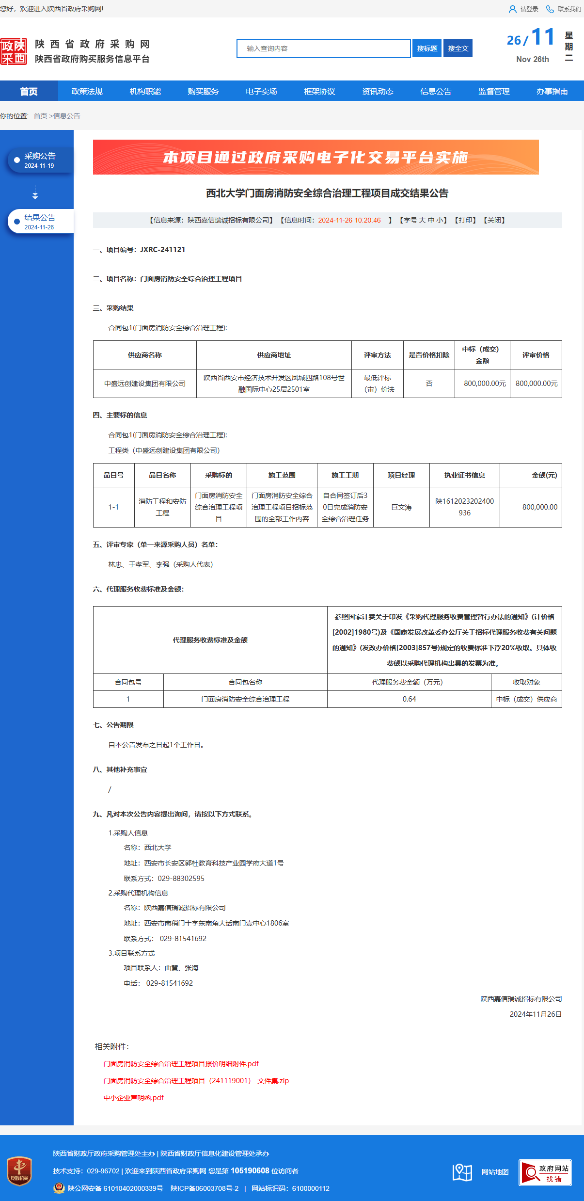 乐投平台后勤集团三校区消防安全综合治理工程成交结果公告