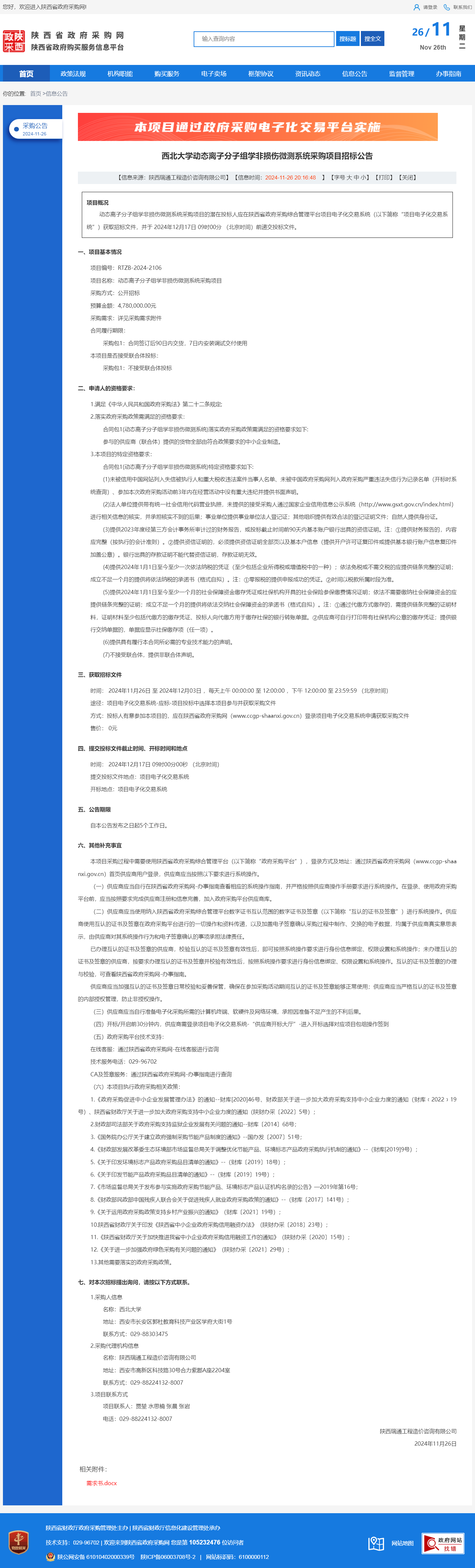 乐投平台动态离子分子组学非损伤微测系统采购项目招标公告 作者:采购与招标办公室 编辑: 时间:2024-11-26 原公告链接:http://www.ccgp-shaanxi.gov.cn/freecms/site/shaanxi/ggxx/info/2024/8a69c95d921859f00193685d31243738.html?noticeType=001011¬iceId=e6602f79-abf1-11ef-8063-08c0eb20c666