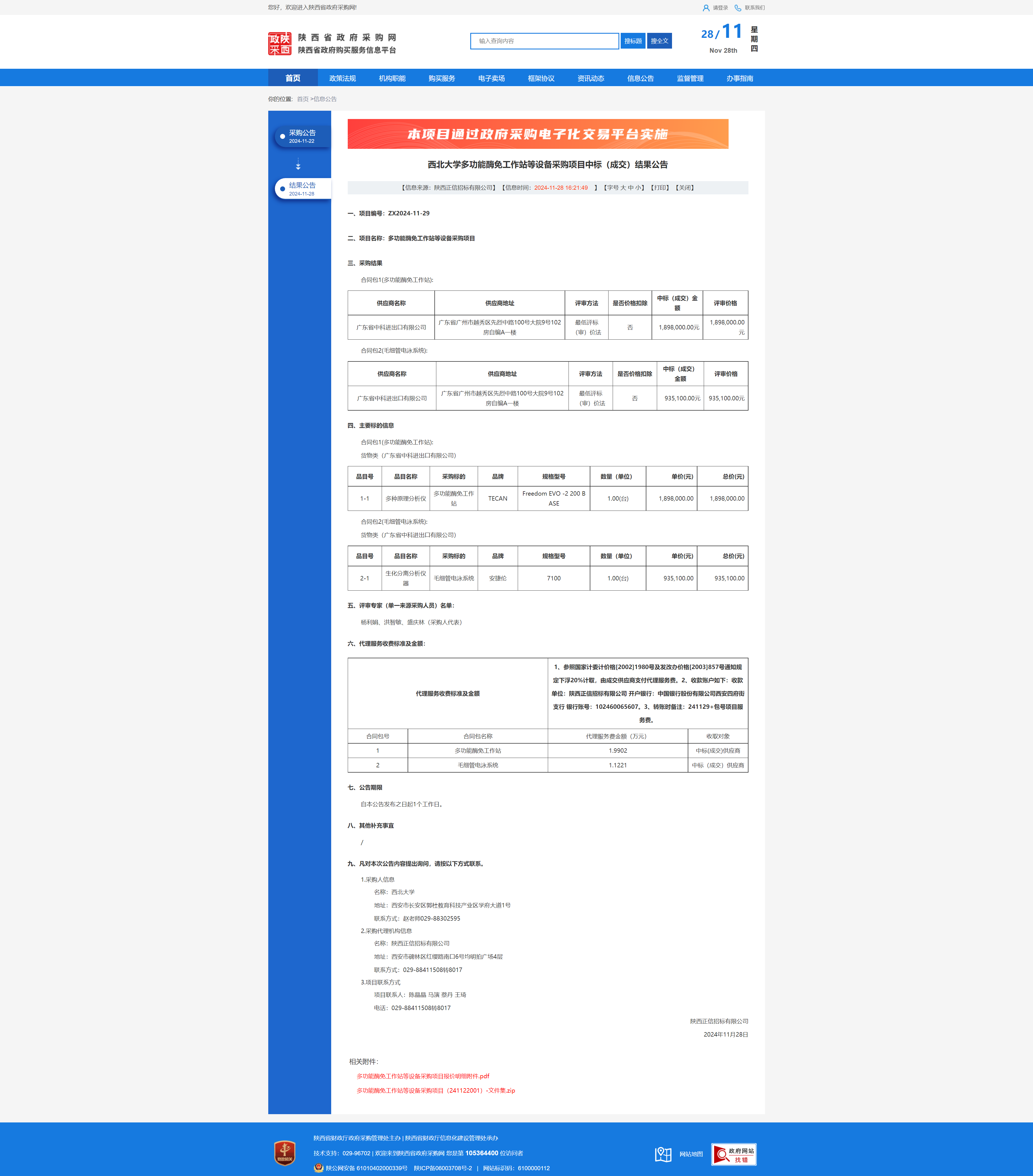 乐投平台多功能酶免工作站等设备采购项目中标(成交)结果公告