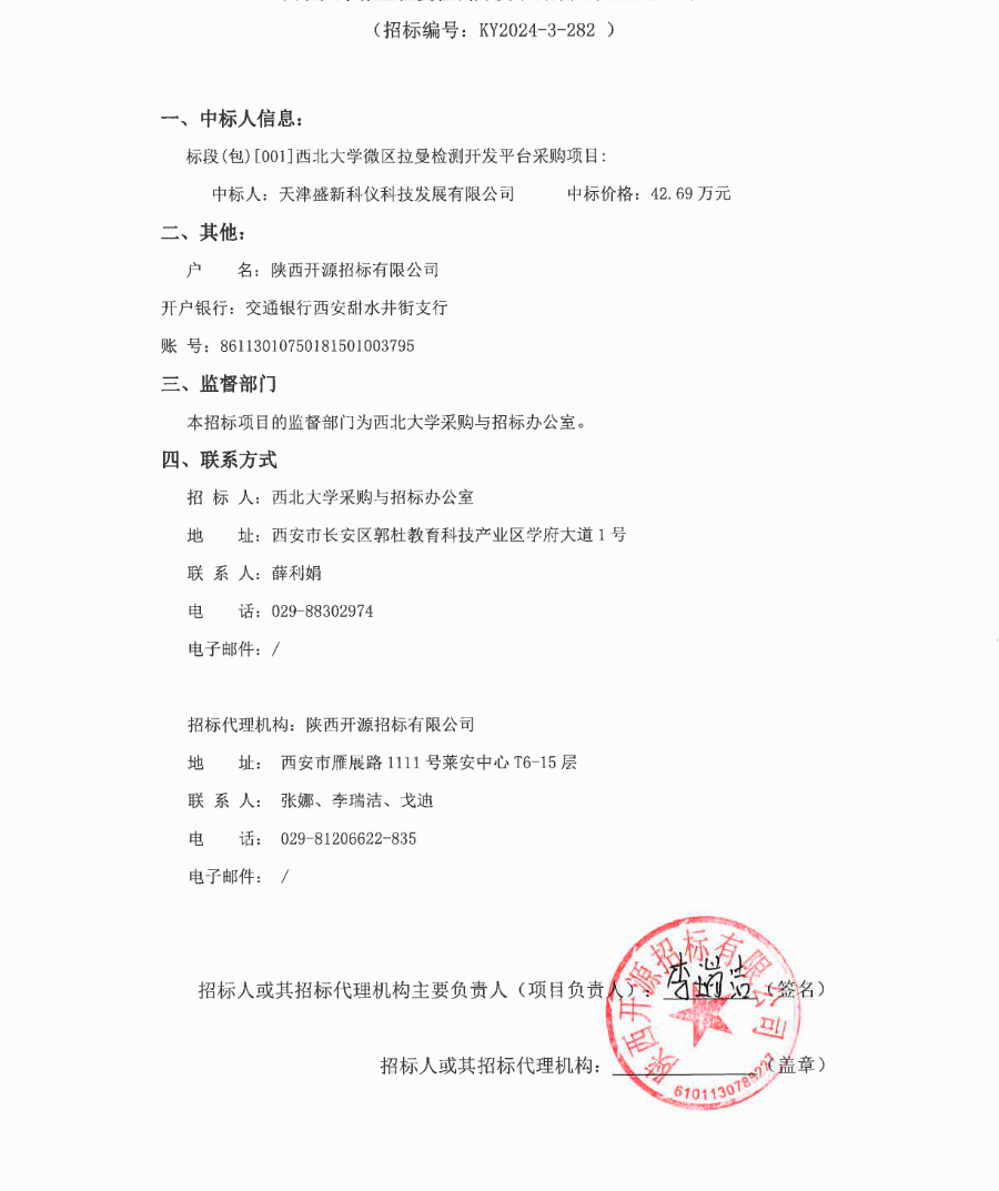乐投平台微区拉曼检测开发平台采购项目成交公告 作者: 编辑:薛利娟 时间:2024-11-28 原公告链接:http://bulletin.sntba.com/resultBulletin/2024-11-28/1990304.html