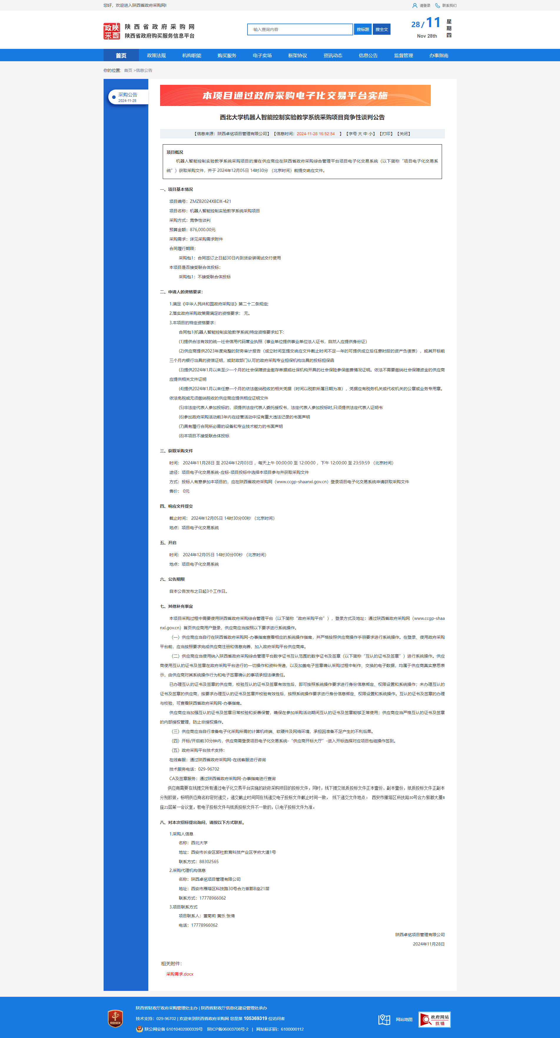 乐投平台机器人智能控制实验教学系统采购项目竞争性谈判公告