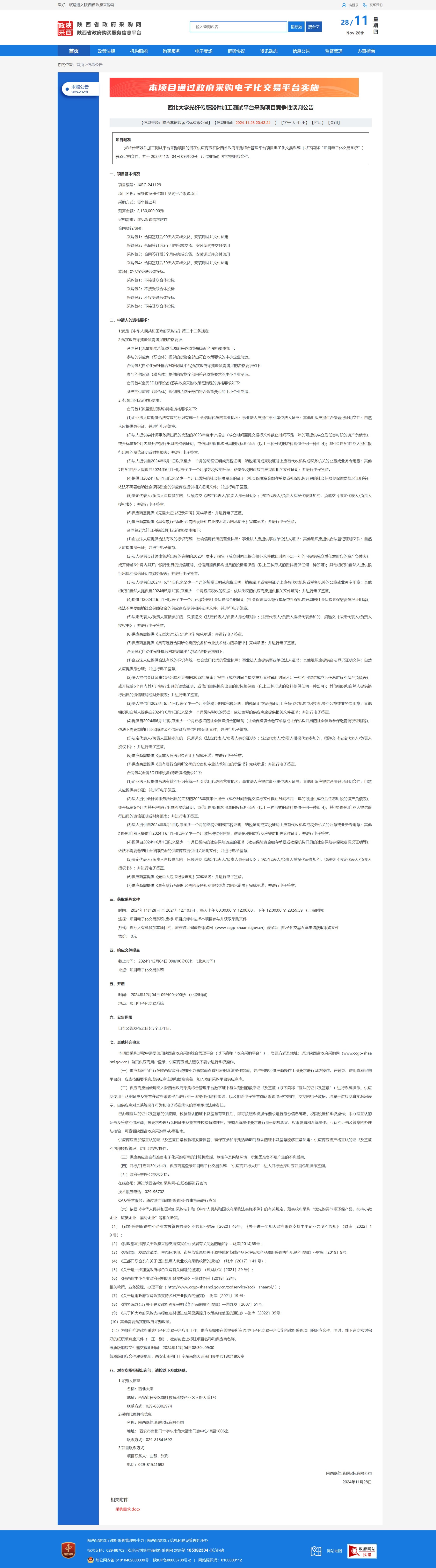 乐投平台光纤传感器件加工测试平台采购项目竞争性谈判公告 作者: 编辑:薛利娟 时间:2024-11-28 原公告链接:https://www.ccgp-shaanxi.gov.cn/freecms/site/shaanxi/ggxx/info/2024/8a69c95d921859f0019372bce9754d0c.html?noticeType=001013¬iceId=f3d424e2-ad87-11ef-8063-08c0eb20c666