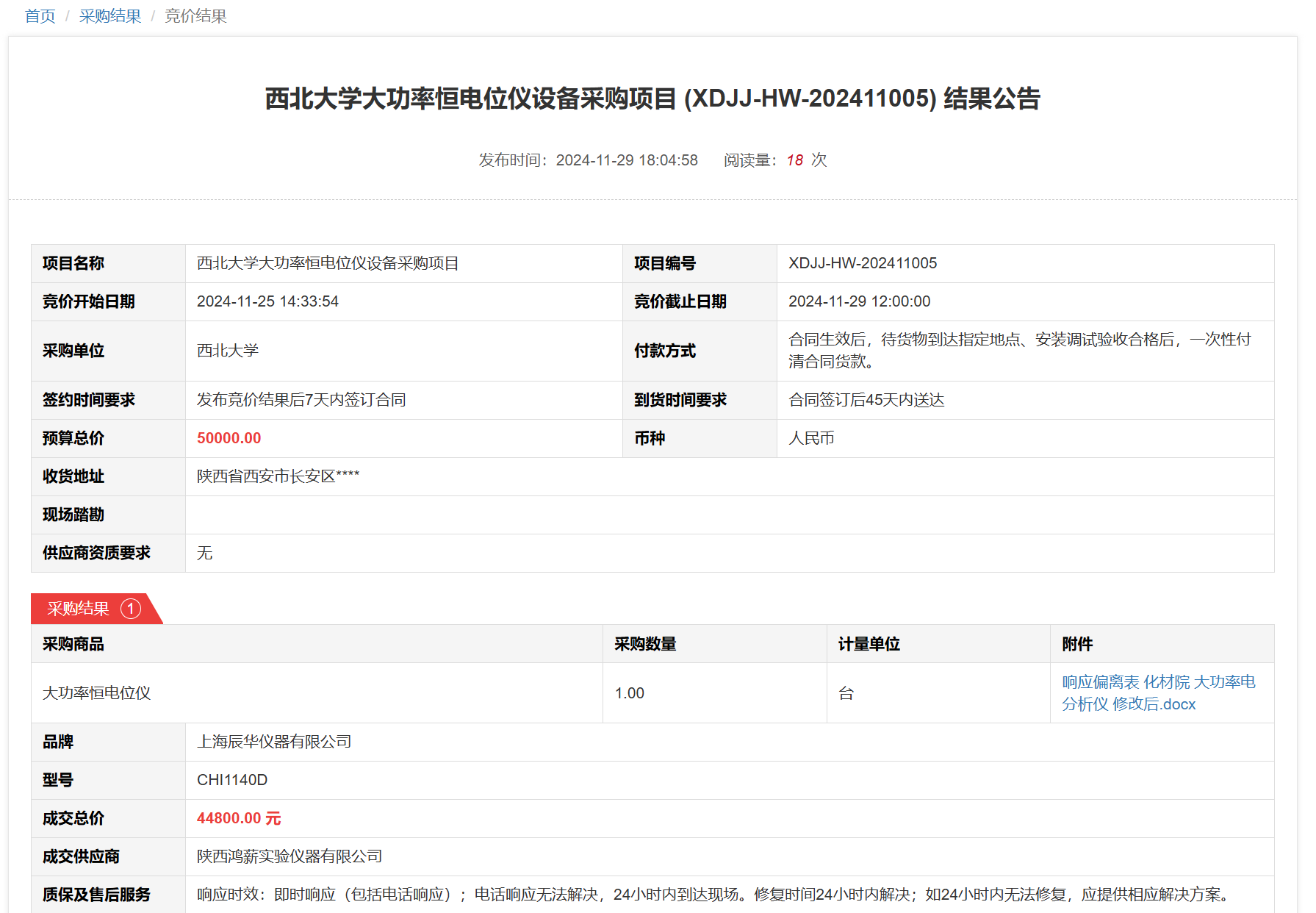 乐投平台大功率恒电位仪设备采购项目(XDJJ-HW-202411005)竞价结果公告 作者:采购与招标办公室 编辑: 时间:2024-11-29 原公告链接:https://www.ejingcai.com.cn/site/bidding/detail/15509