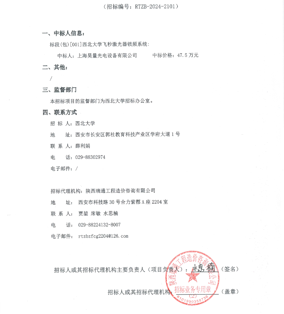 乐投平台飞秒激光器锁频系统采购项目结果公告 作者: 编辑:薛利娟 时间:2024-12-02 原公告链接:http://bulletin.sntba.com/resultBulletin/2024-12-02/1991782.html