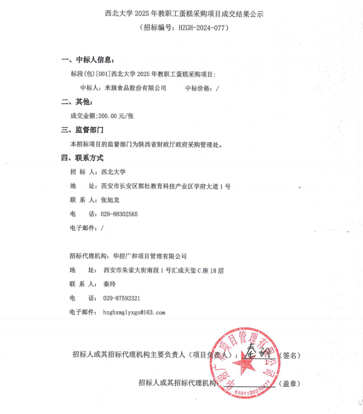 乐投平台2025年教职工蛋糕采购项目成交结果公示
