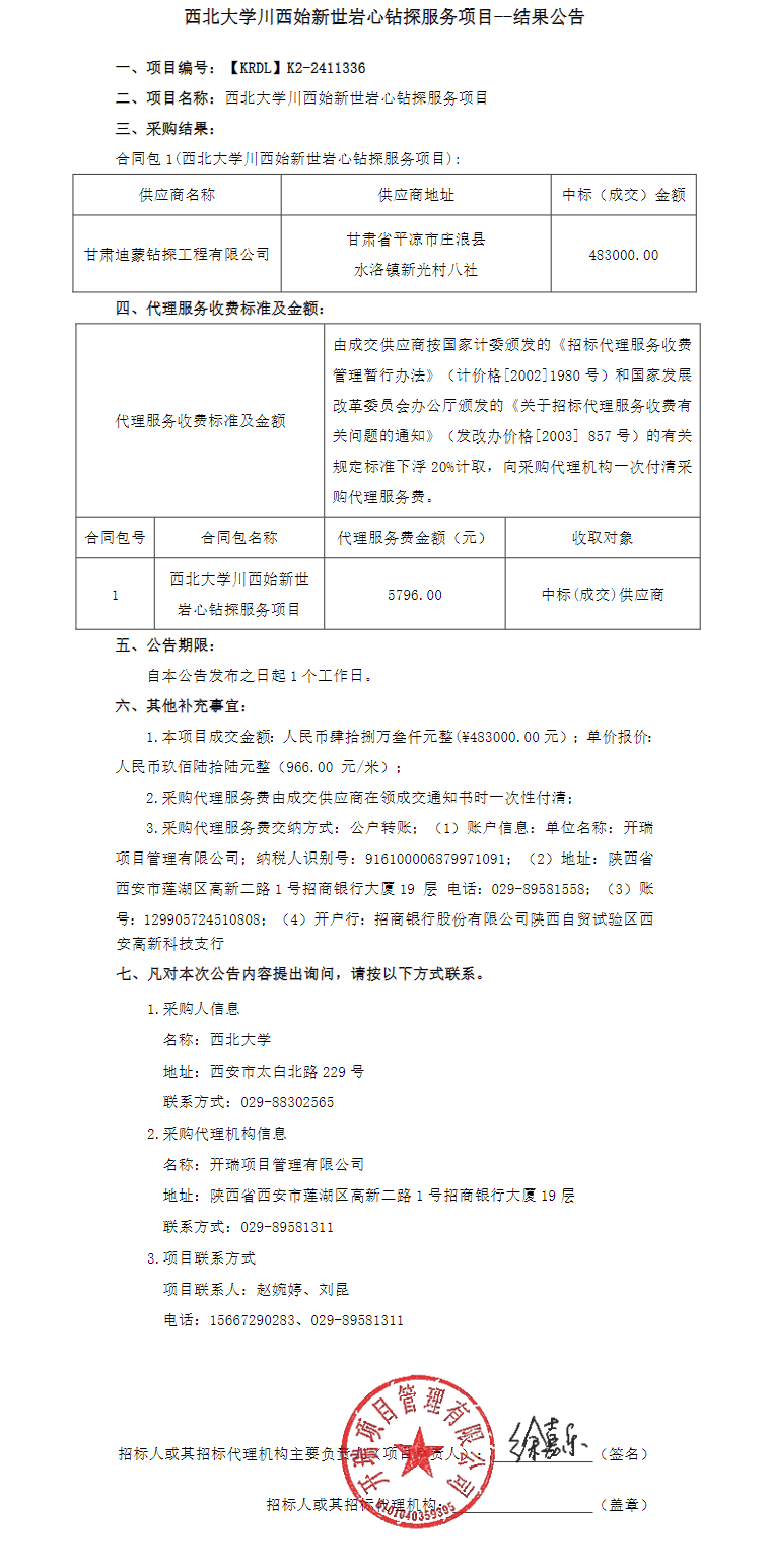 乐投平台川西始新世岩心钻探服务项目结果公告