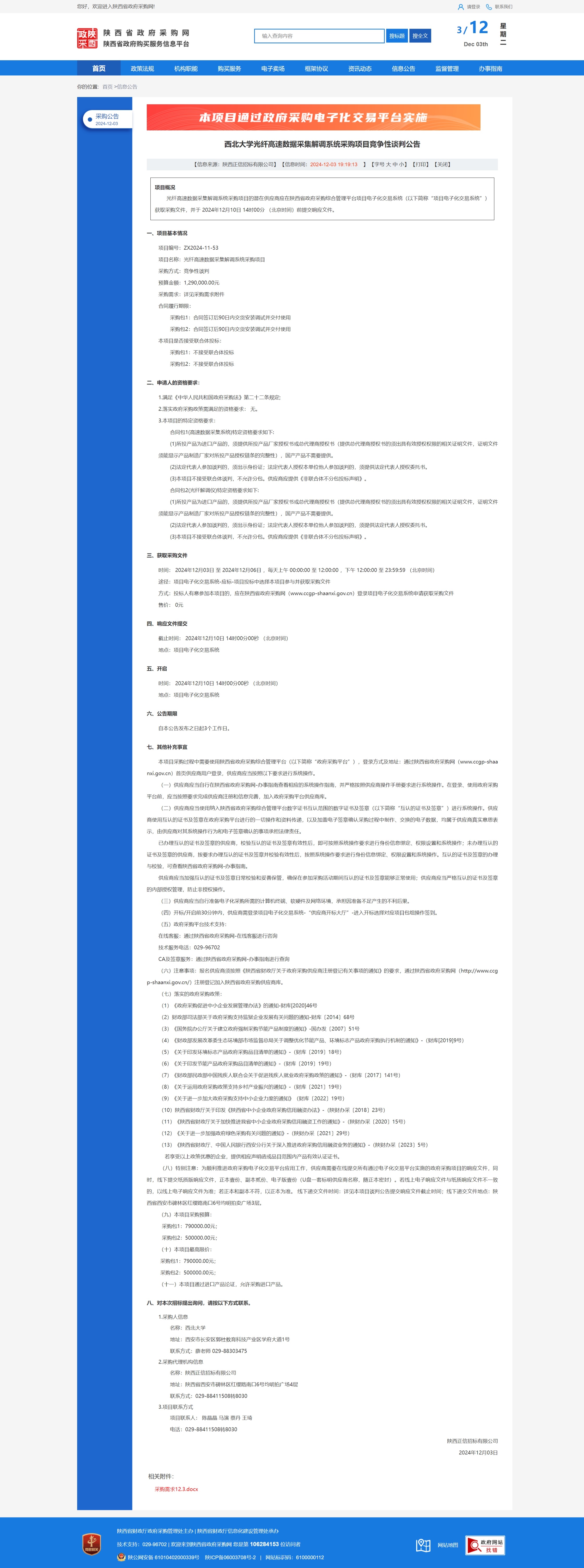 乐投平台光纤高速数据采集解调系统采购项目竞争性谈判公告 作者: 编辑:薛利娟 时间:2024-12-03 原公告链接:https://www.ccgp-shaanxi.gov.cn/freecms/site/shaanxi/ggxx/info/2024/8a69c5a59218576d01938c1dd51a5970.html?noticeType=001013¬iceId=07b0f0e1-b16a-11ef-8063-08c0eb20c666