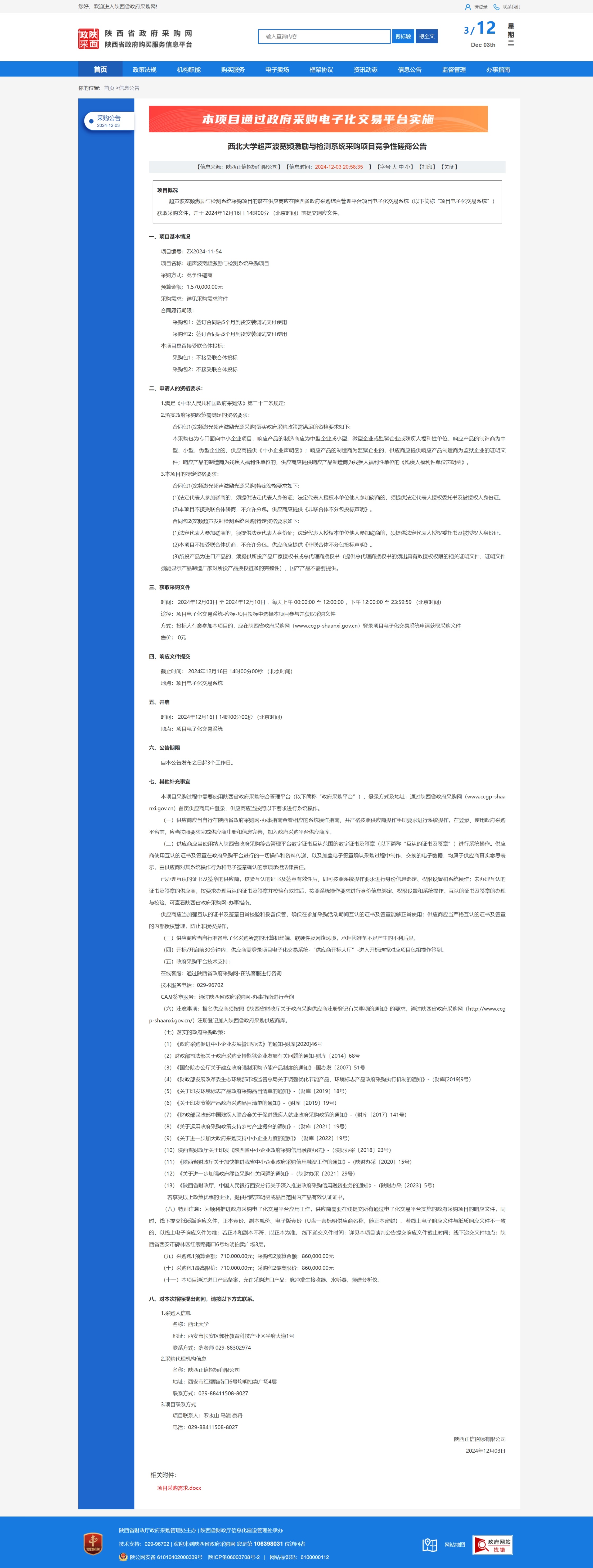 乐投平台超声波宽频激励与检测系统采购项目竞争性磋商公告 作者: 编辑:薛利娟 时间:2024-12-03 原公告链接:https://www.ccgp-shaanxi.gov.cn/freecms/site/shaanxi/ggxx/info/2024/8a69c2519218573701938c6e21a55ceb.html?noticeType=001016¬iceId=e936ad5a-b177-11ef-8063-08c0eb20c666