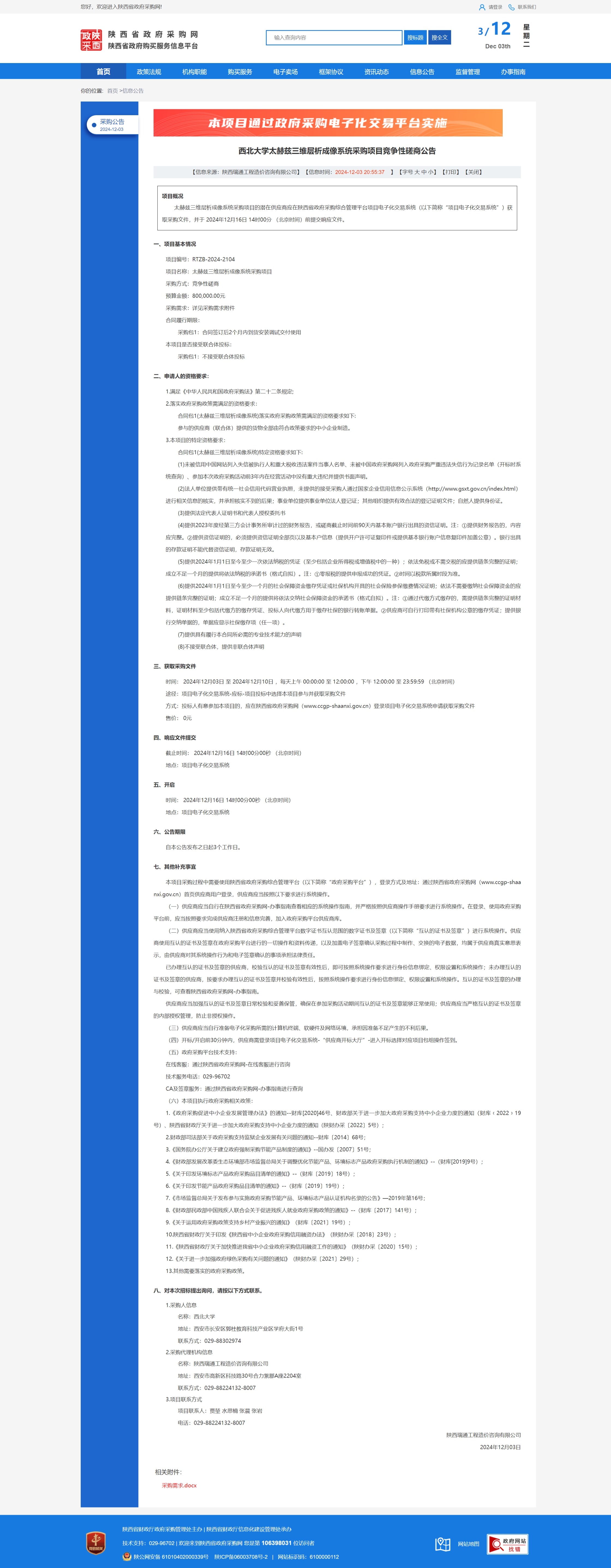 乐投平台太赫兹三维层析成像系统采购项目竞争性磋商公告 作者: 编辑:薛利娟 时间:2024-12-03 原公告链接:https://www.ccgp-shaanxi.gov.cn/freecms/site/shaanxi/ggxx/info/2024/8a69c95d921859f001938c91d623402a.html?noticeType=001016¬iceId=7f0f6e3e-b177-11ef-8063-08c0eb20c666
