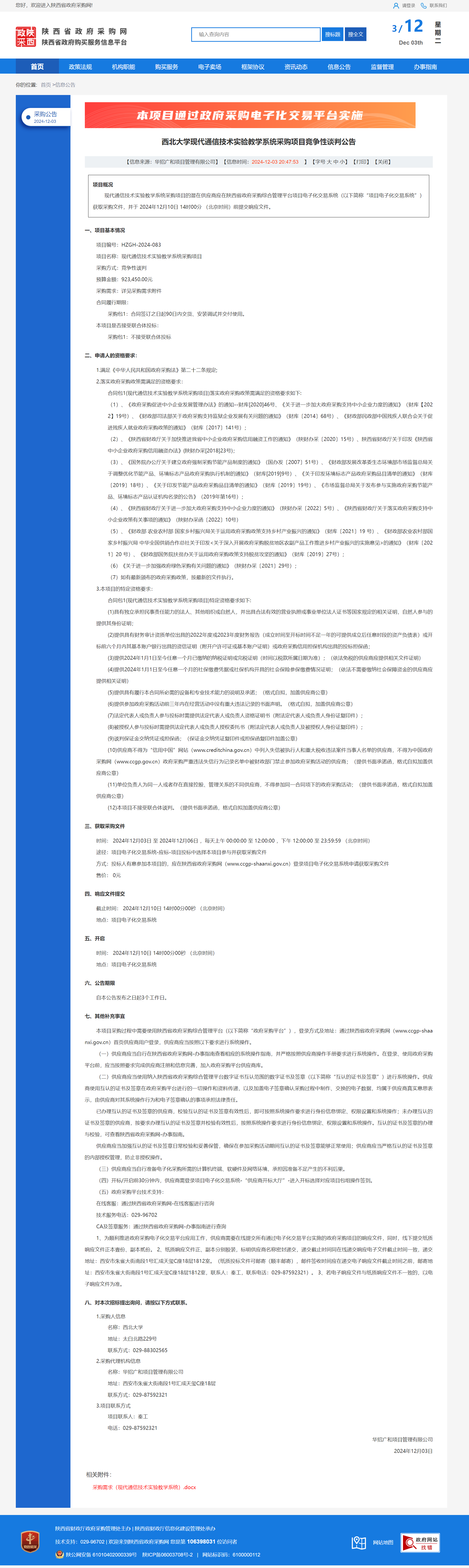 乐投平台现代通信技术实验教学系统采购项目竞争性谈判公告