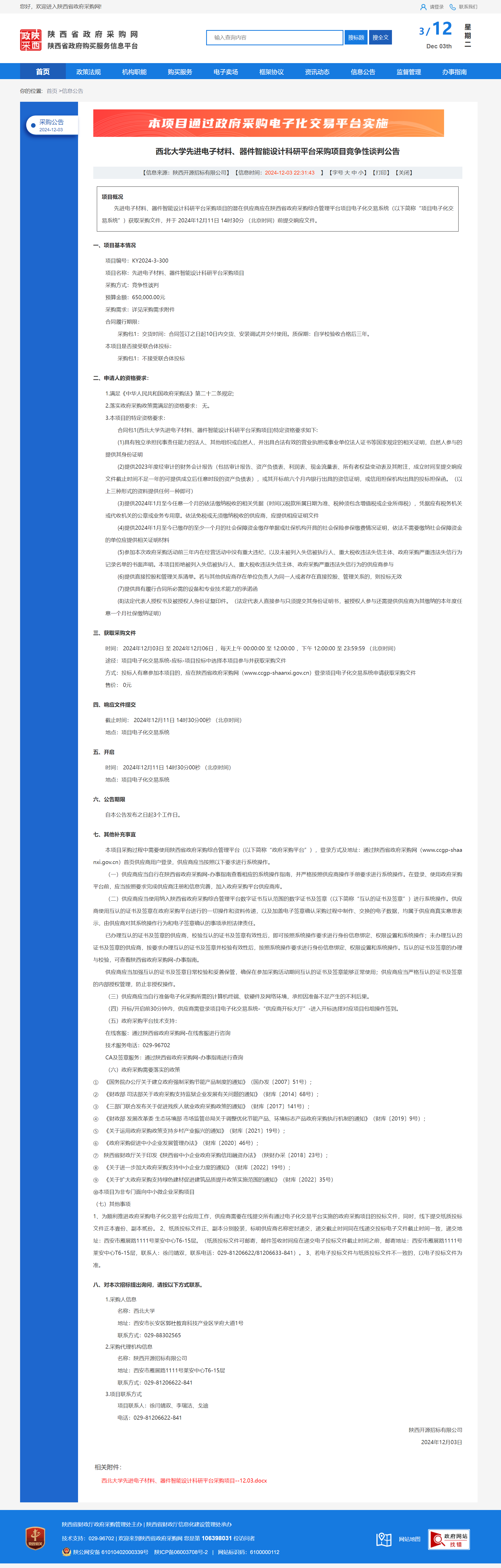 乐投平台先进电子材料、器件智能设计科研平台采购项目竞争性谈判公告