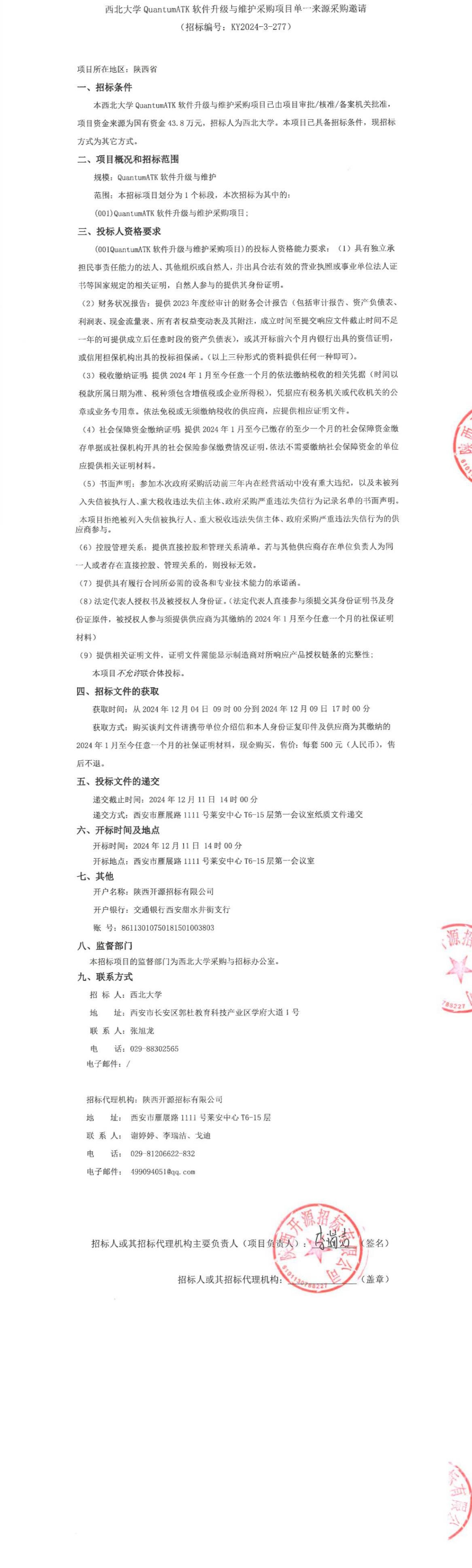 乐投平台QuantumATK软件升级与维护采购项目单一来源采购邀请