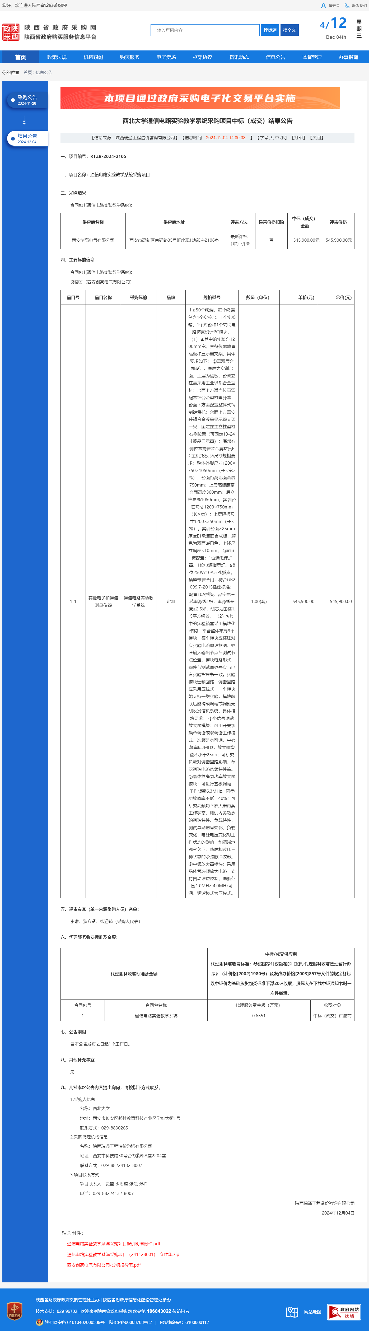 乐投平台通信电路实验教学系统采购项目中标(成交)结果公告