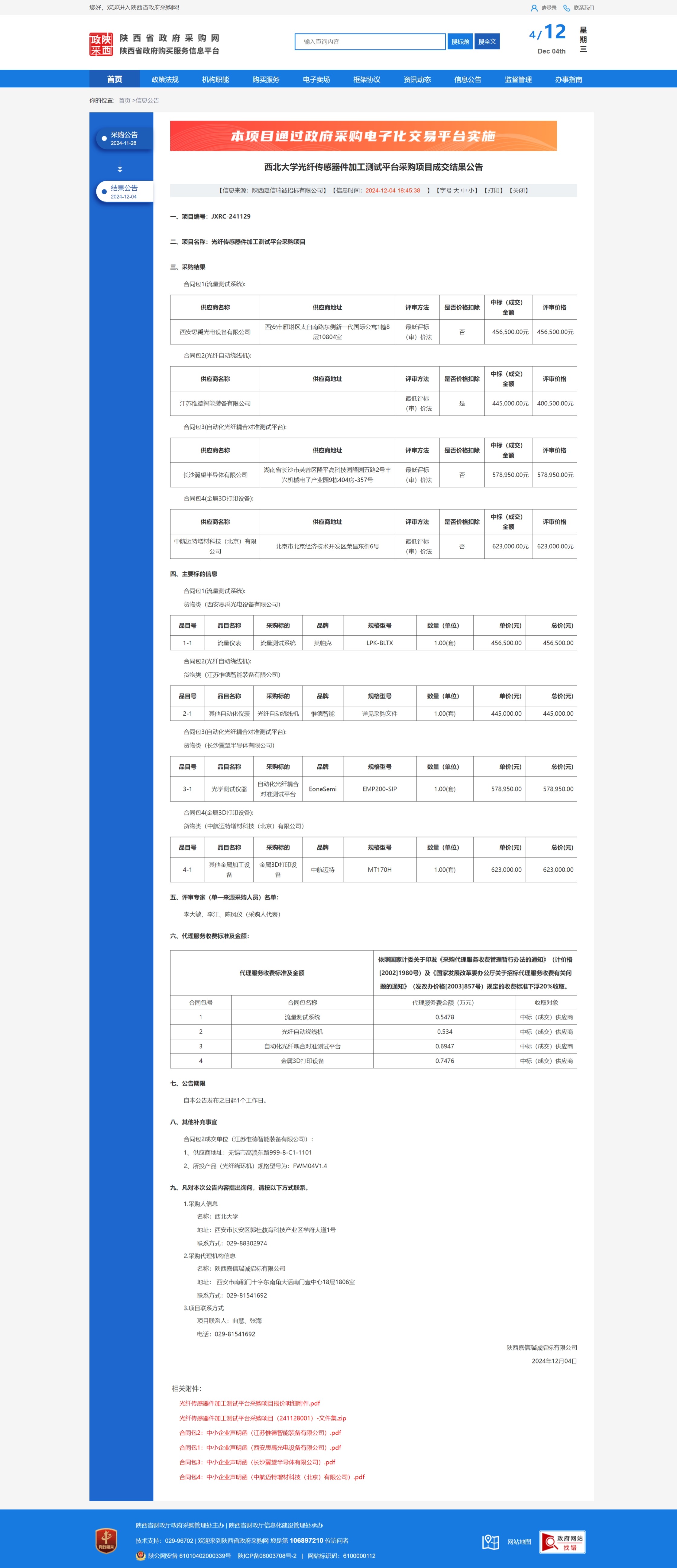 乐投平台光纤传感器件加工测试平台采购项目成交结果公告 作者: 编辑:薛利娟 时间:2024-12-04 原公告链接:https://www.ccgp-shaanxi.gov.cn/freecms/site/shaanxi/ggxx/info/2024/8a69c44e9218572b01939102d4831058.html?noticeType=001023¬iceId=81946fcd-b22e-11ef-8063-08c0eb20c666