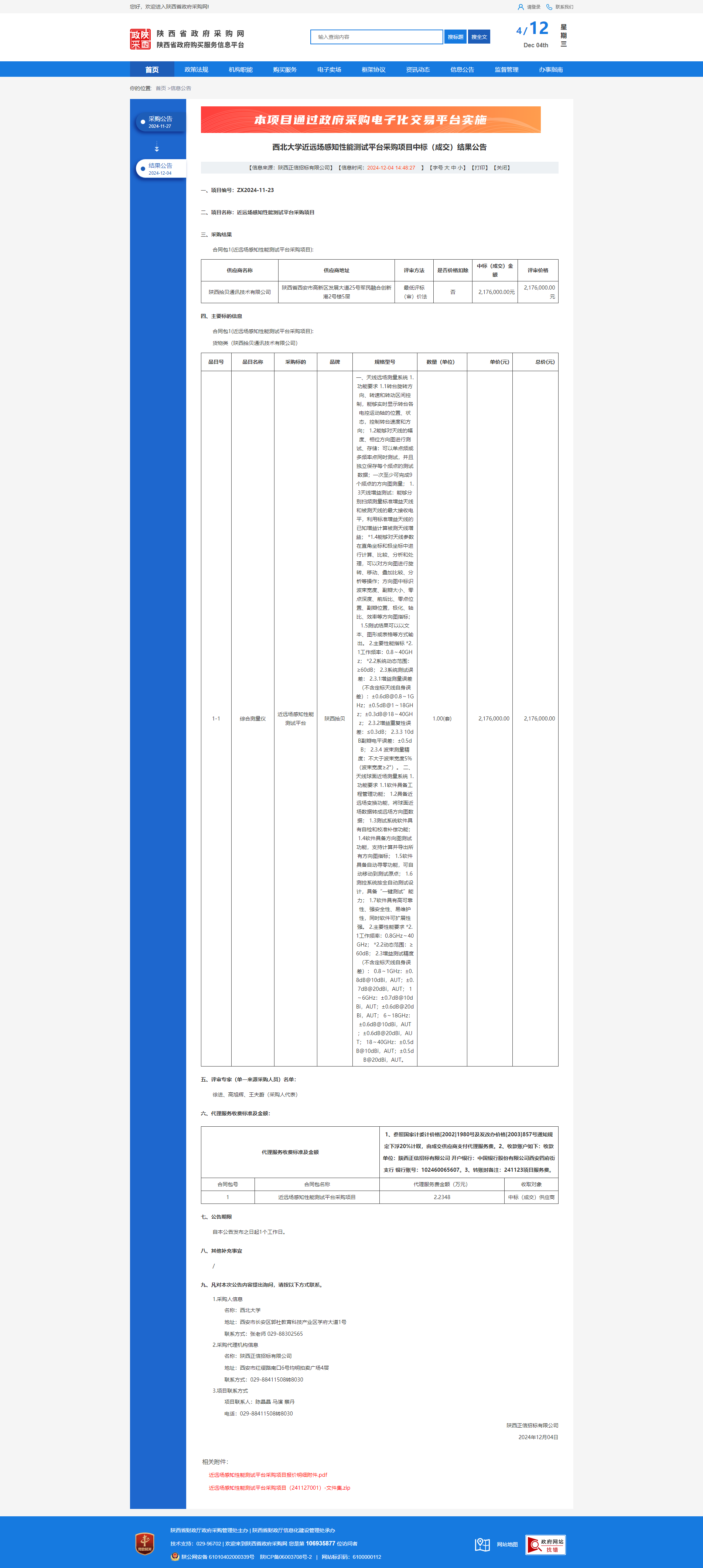乐投平台感知元件电磁参数测试平台等设备采购项目中标(成交)结果公告