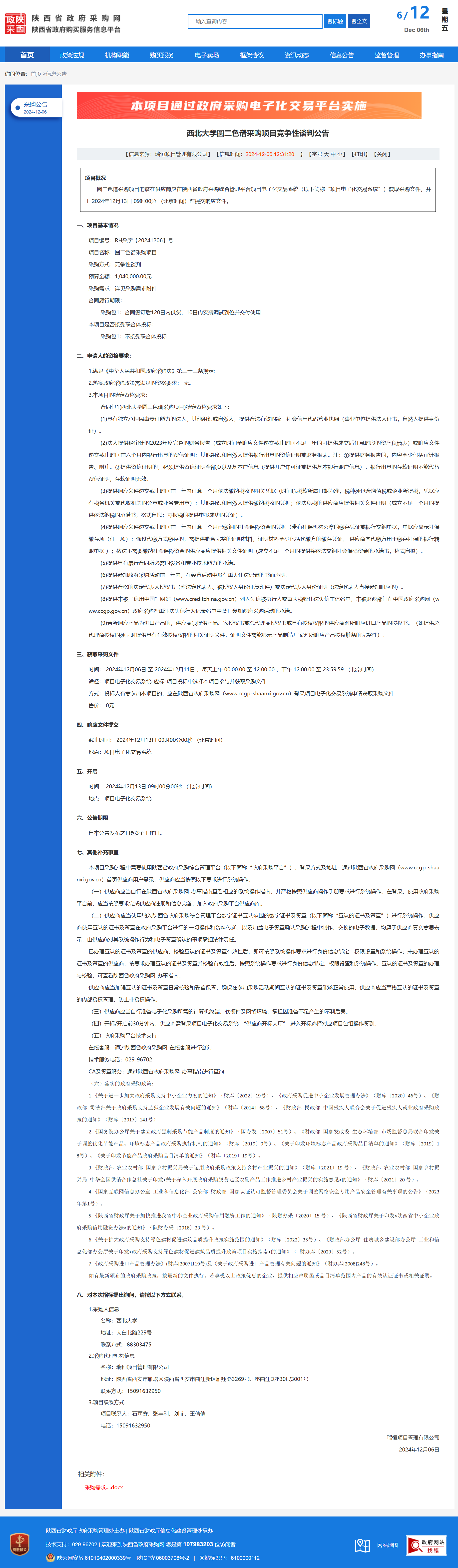 乐投平台圆二色谱采购项目竞争性谈判公告 作者:采购与招标办公室 编辑: 时间:2024-12-06 原公告链接:https://www.ccgp-shaanxi.gov.cn/freecms/site/shaanxi/ggxx/info/2024/8a69c44e9218572b01939a34451055bc.html?noticeType=001013¬iceId=8d0f9f1f-b38c-11ef-8063-08c0eb20c666