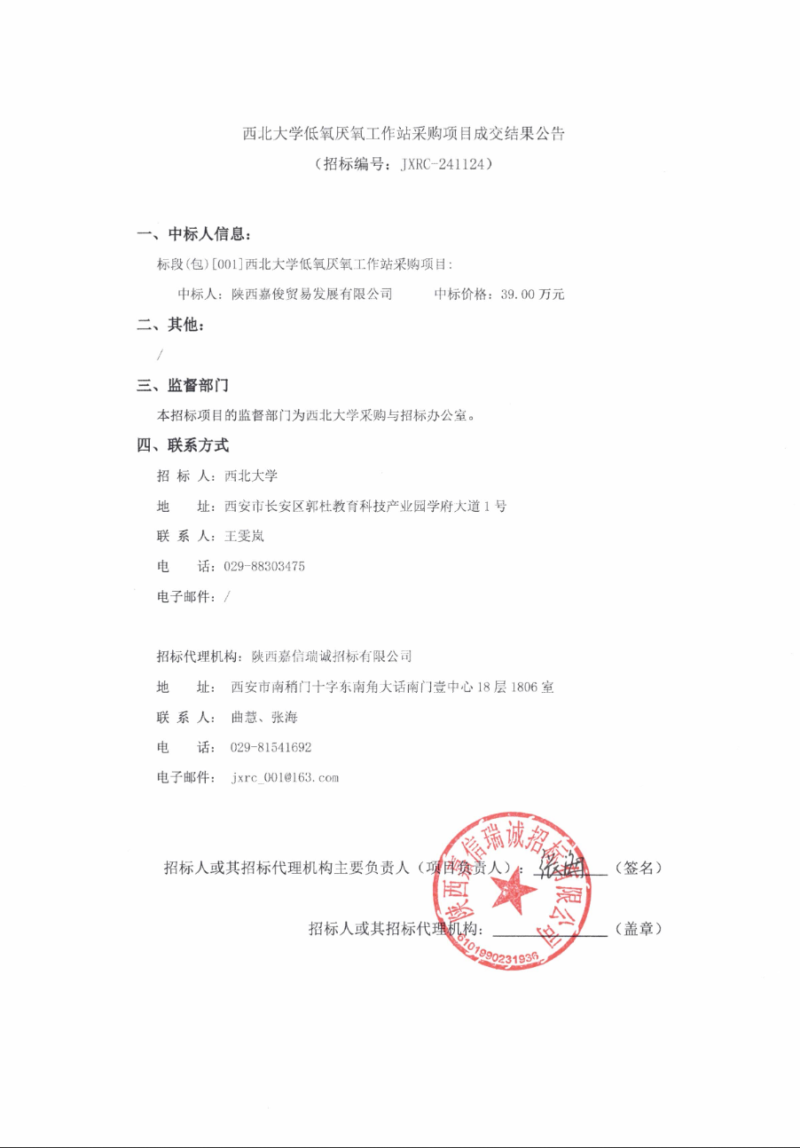 乐投平台低氧厌氧工作站采购项目成交结果公告 作者:采购与招标办公室 编辑: 时间:2024-12-10 原公告链接:http://bulletin.sntba.com/resultBulletin/2024-12-10/1995694.html