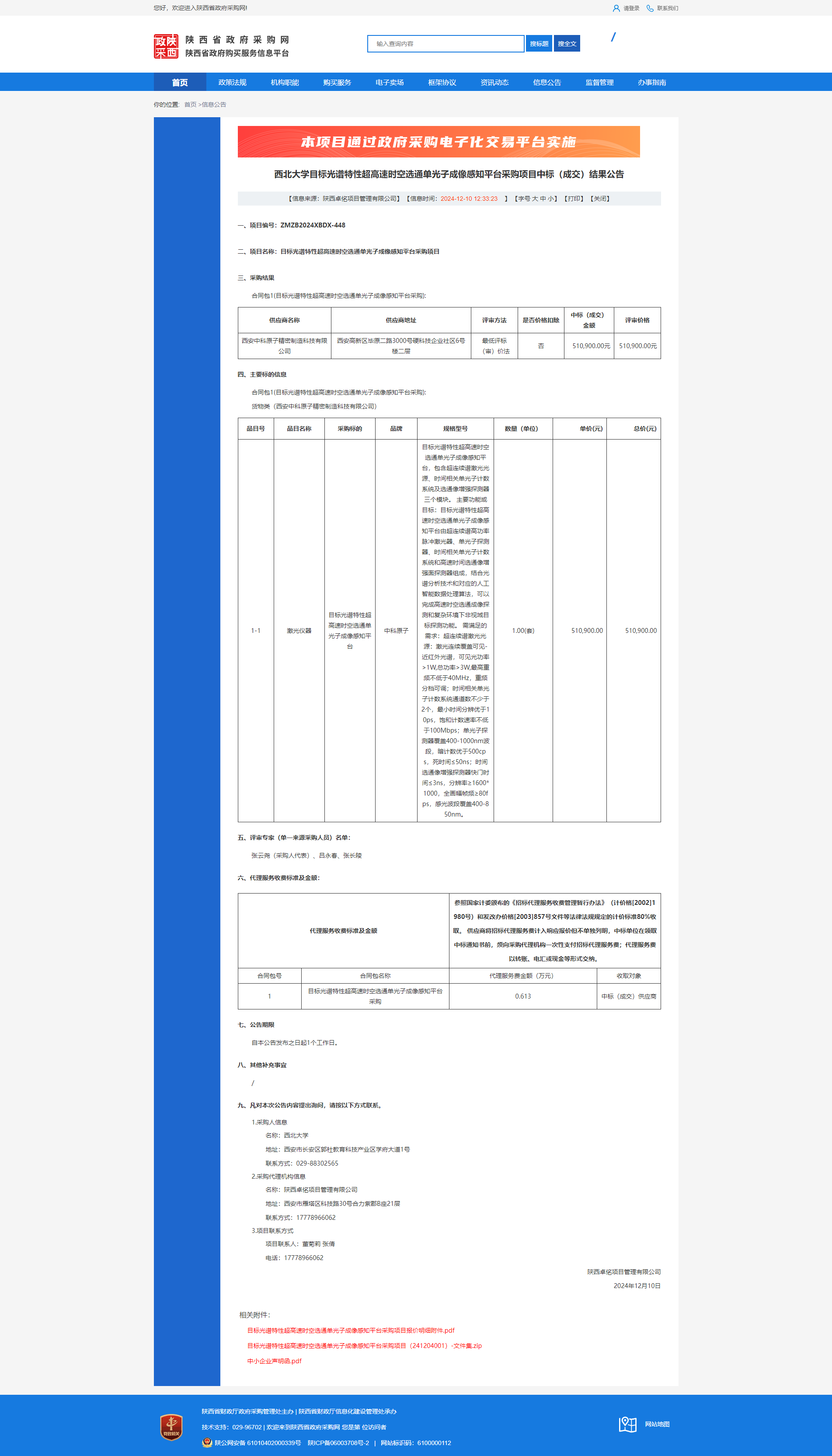 乐投平台目标光谱特性超高速时空选通单光子成像感知平台采购项目中标(成交)结果公告