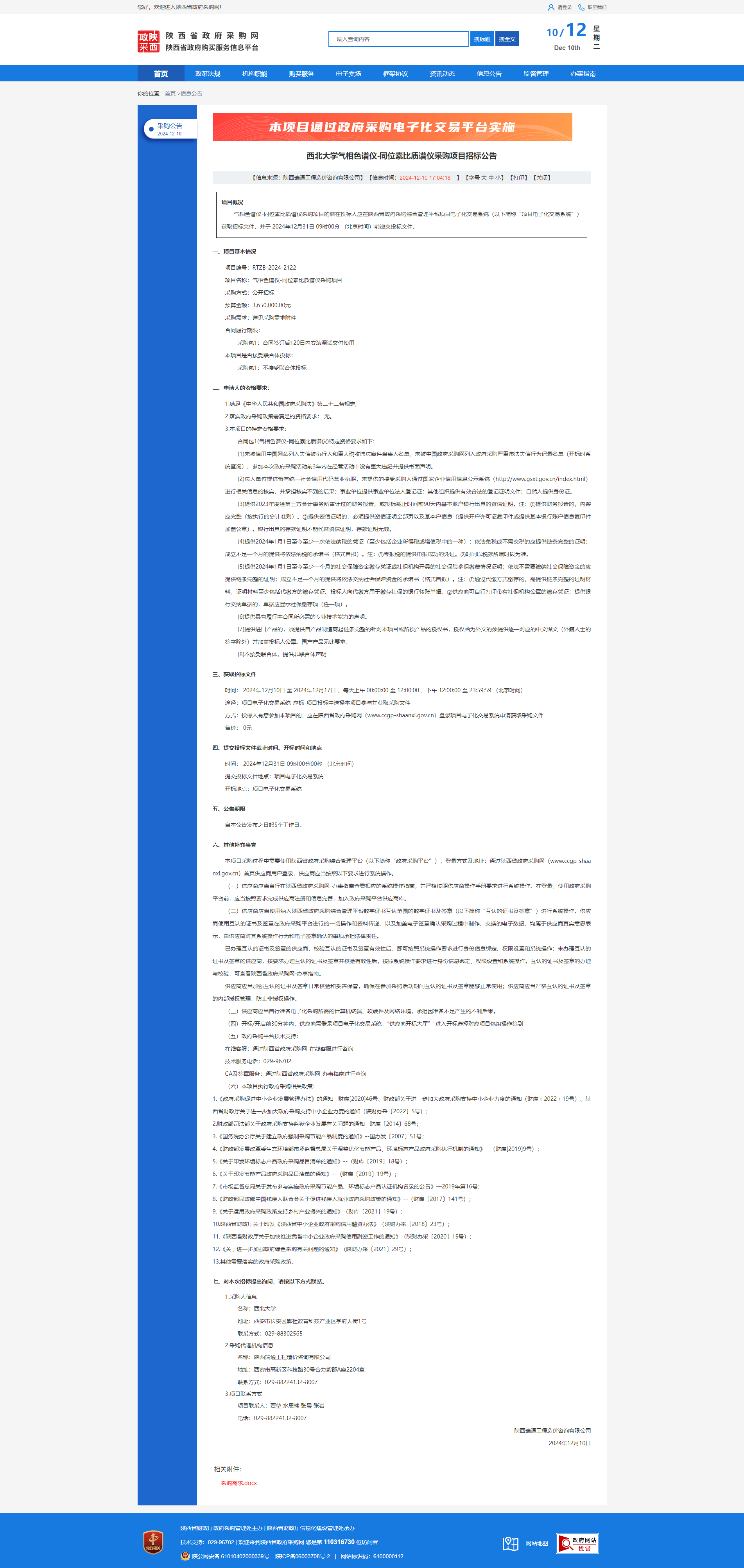 乐投平台气相色谱仪-同位素比质谱仪采购项目招标公告