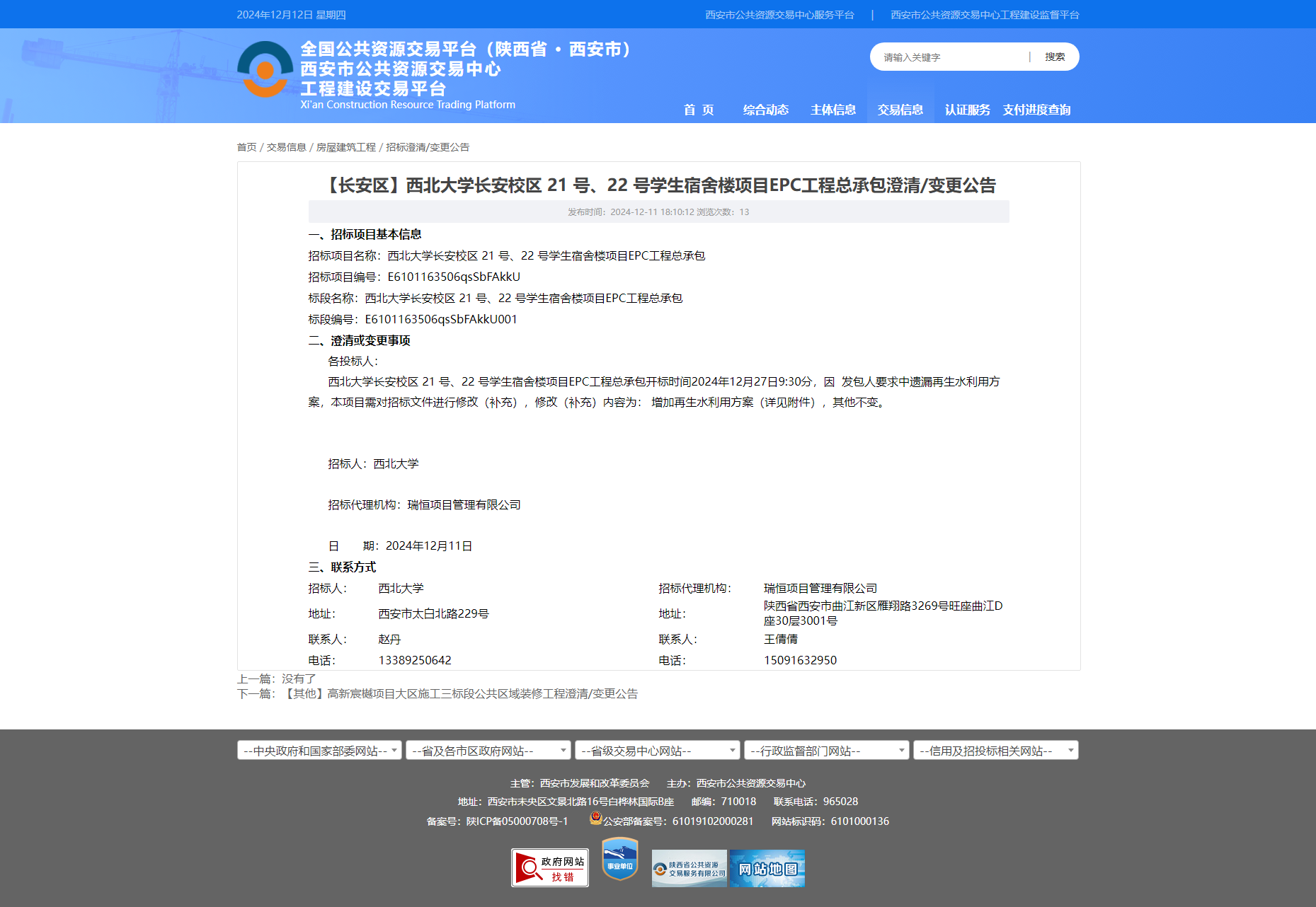 乐投平台长安校区 21 号、22 号学生宿舍楼项目EPC工程总承包澄清/变更公告