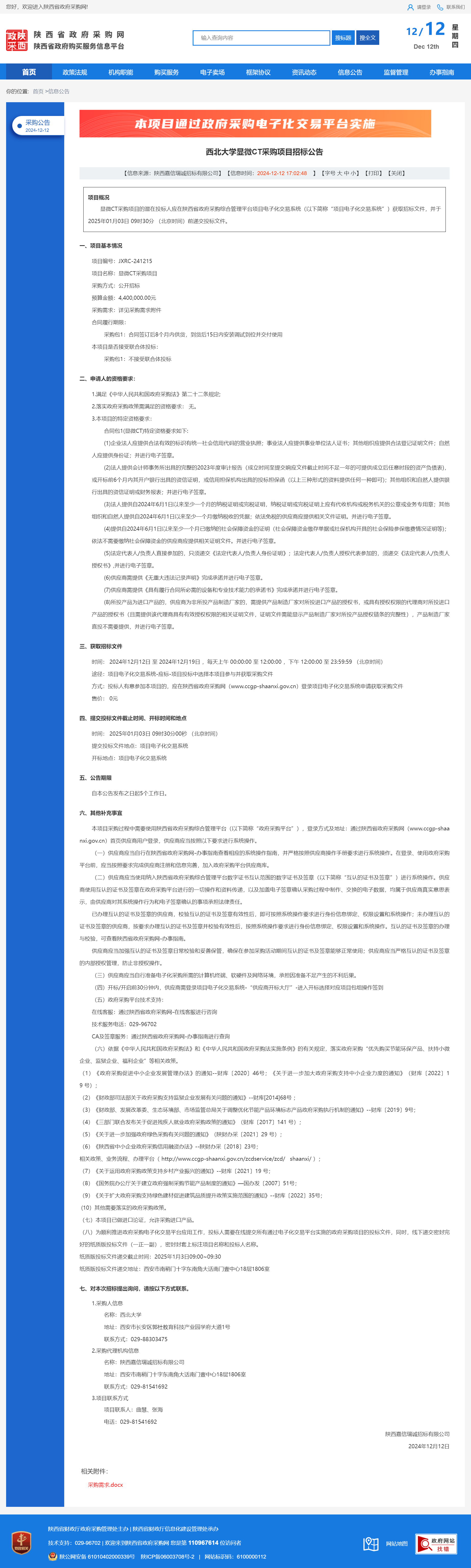 乐投平台显微CT采购项目招标公告 作者:采购与招标办公室 编辑: 时间:2024-12-12 原公告链接:https://www.ccgp-shaanxi.gov.cn/freecms/site/shaanxi/ggxx/info/2024/8a69c5a59218576d0193ba1292507a9d.html?noticeType=001011¬iceId=7add7000-b869-11ef-8063-08c0eb20c666