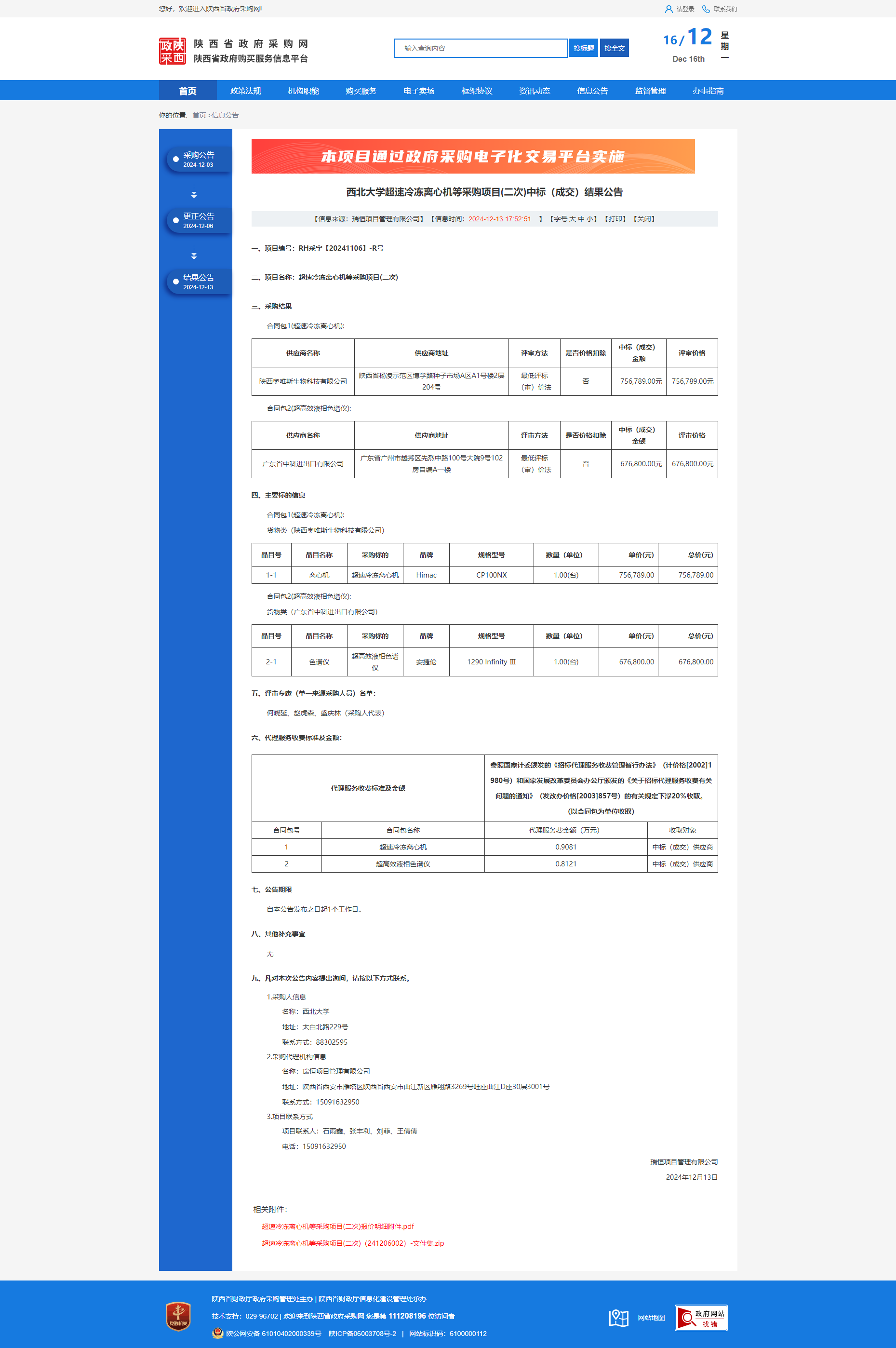 乐投平台超速冷冻离心机等采购项目(二次)中标(成交)结果公告