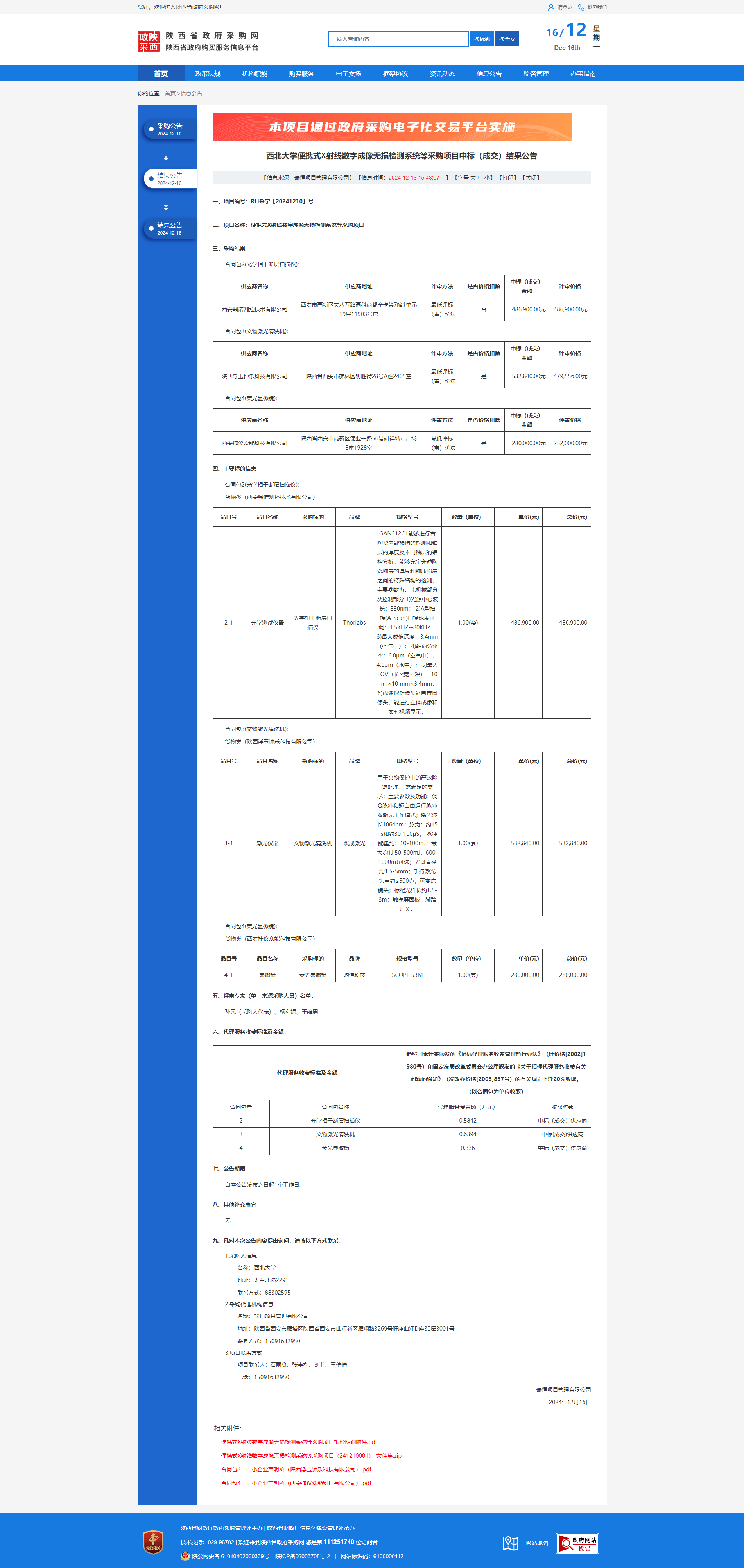 乐投平台便携式X射线数字成像无损检测系统等采购项目中标(成交)结果公告