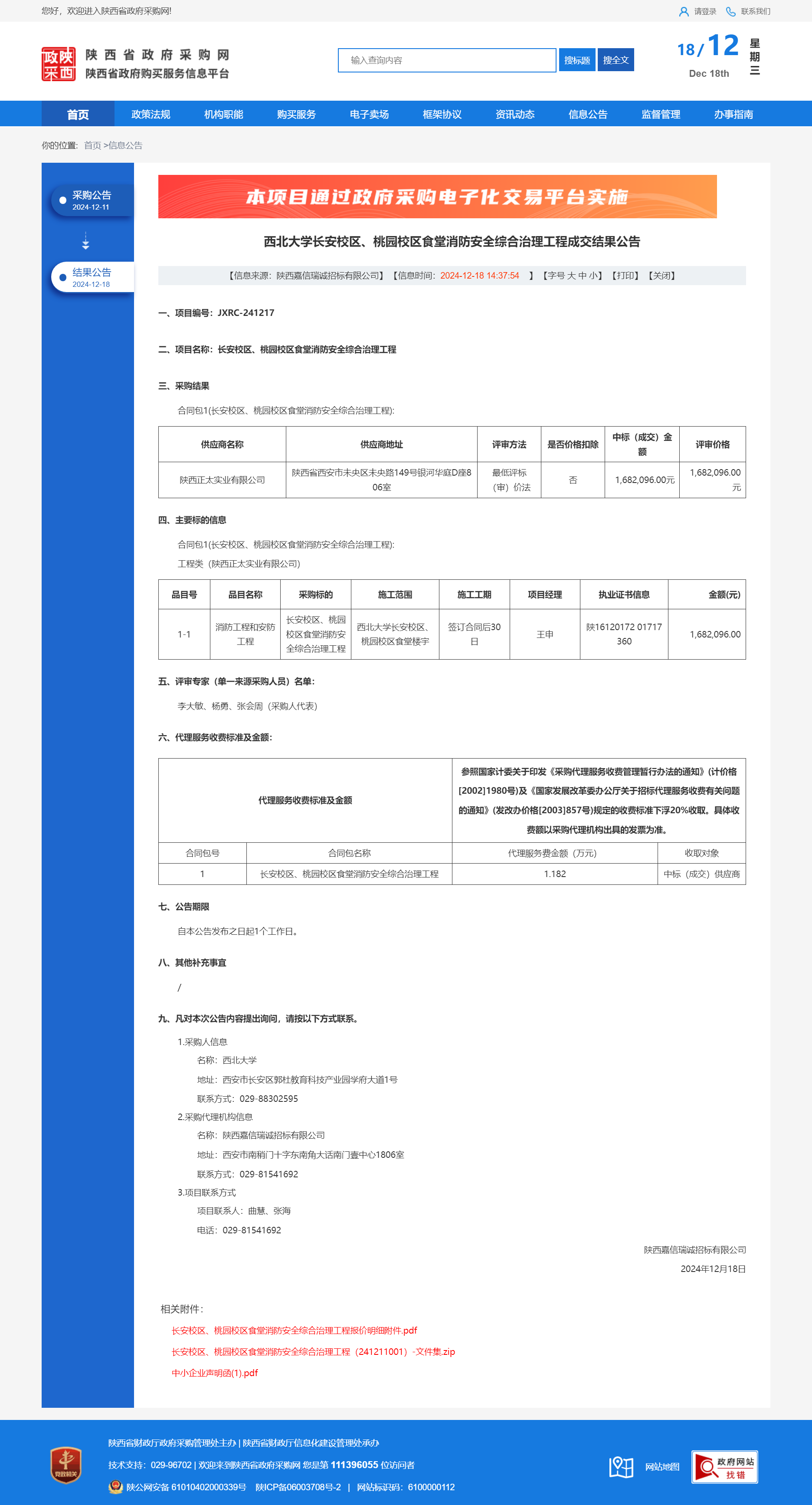 乐投平台长安校区、桃园校区食堂消防安全综合治理工程成交结果公告