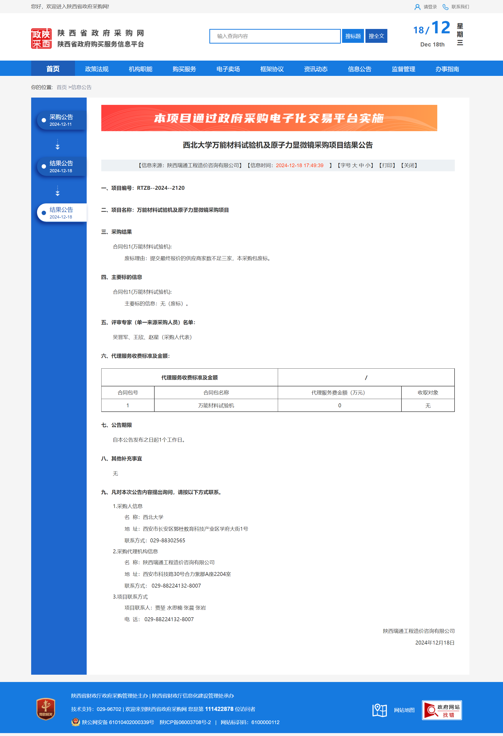 乐投平台万能材料试验机及原子力显微镜采购项目结果公告