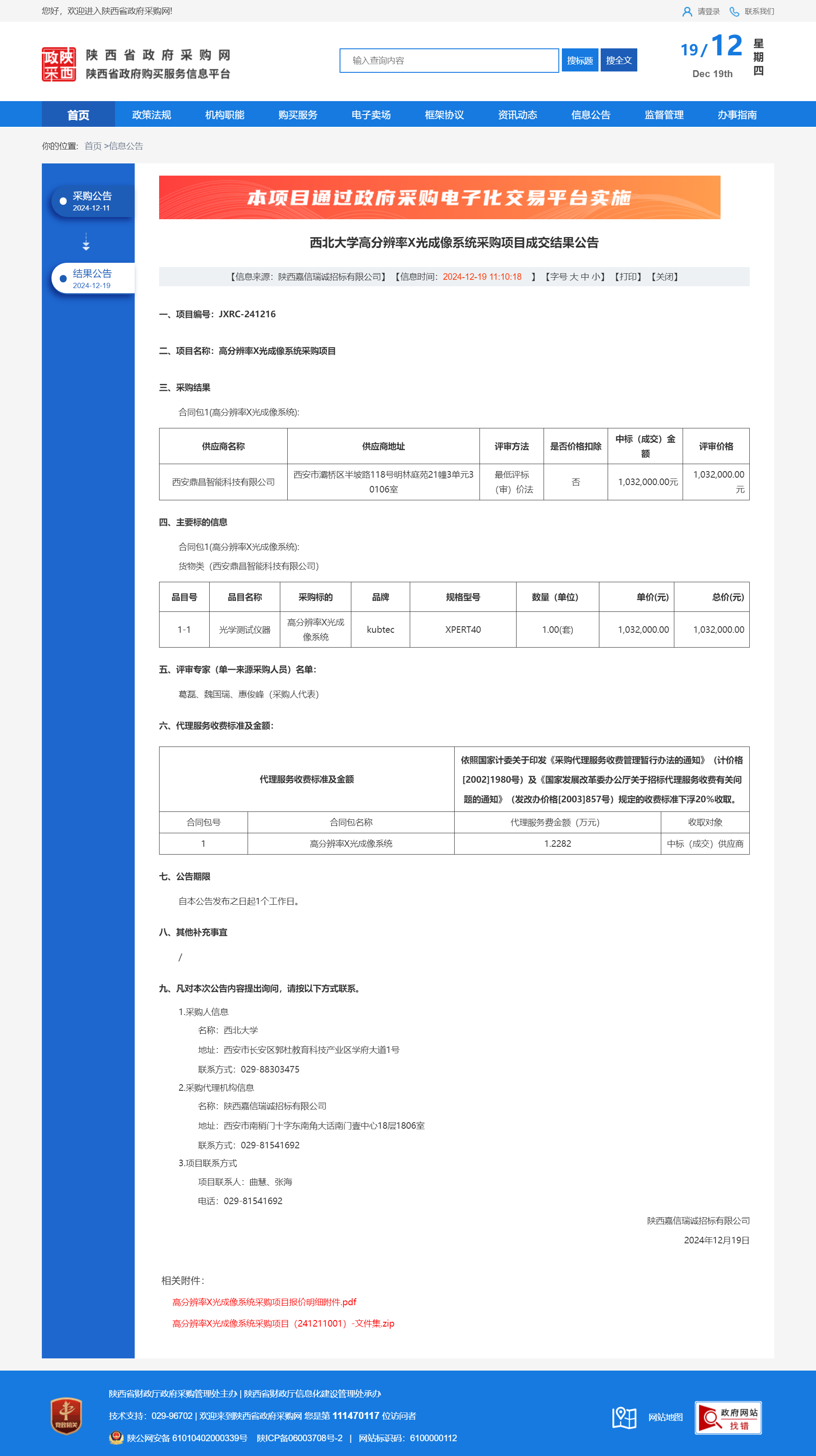 乐投平台高分辨率X光成像系统采购项目成交结果公告 作者:采购与招标办公室 编辑: 时间:2024-12-19 原公告链接:https://www.ccgp-shaanxi.gov.cn/freecms/site/shaanxi/ggxx/info/2024/8a69c5a59218576d0193dcdefa916c53.html?noticeType=001023¬iceId=68a09fa3-bdb8-11ef-8063-08c0eb20c666