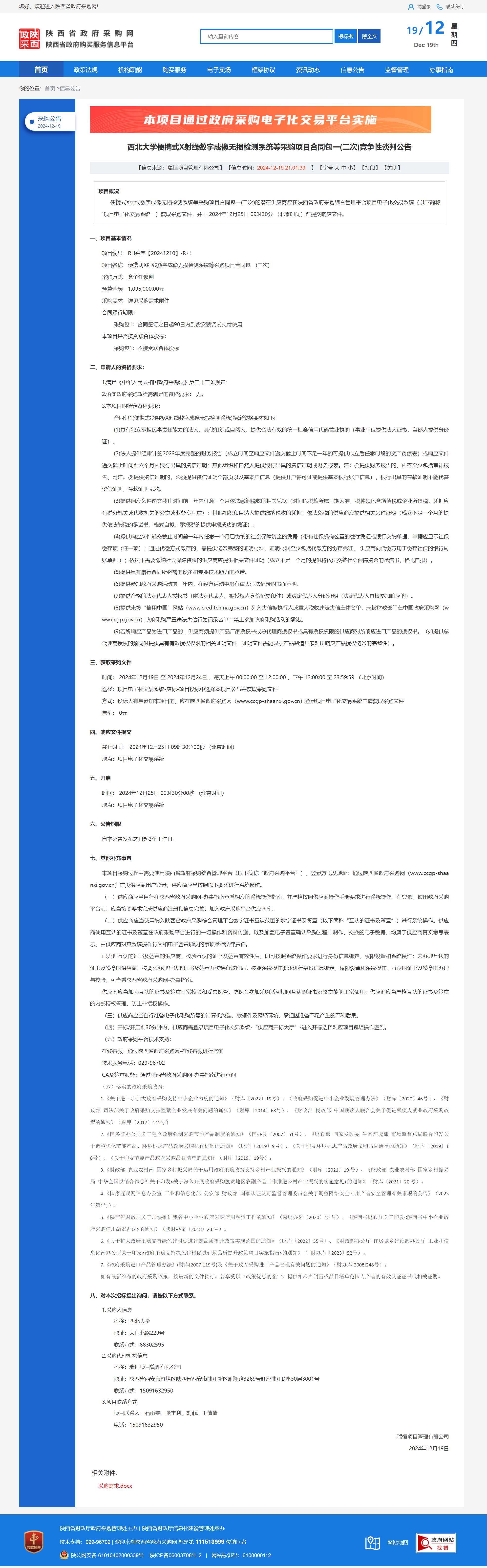 乐投平台便携式X射线数字成像无损检测系统等采购项目合同包一(二次)竞争性谈判公告