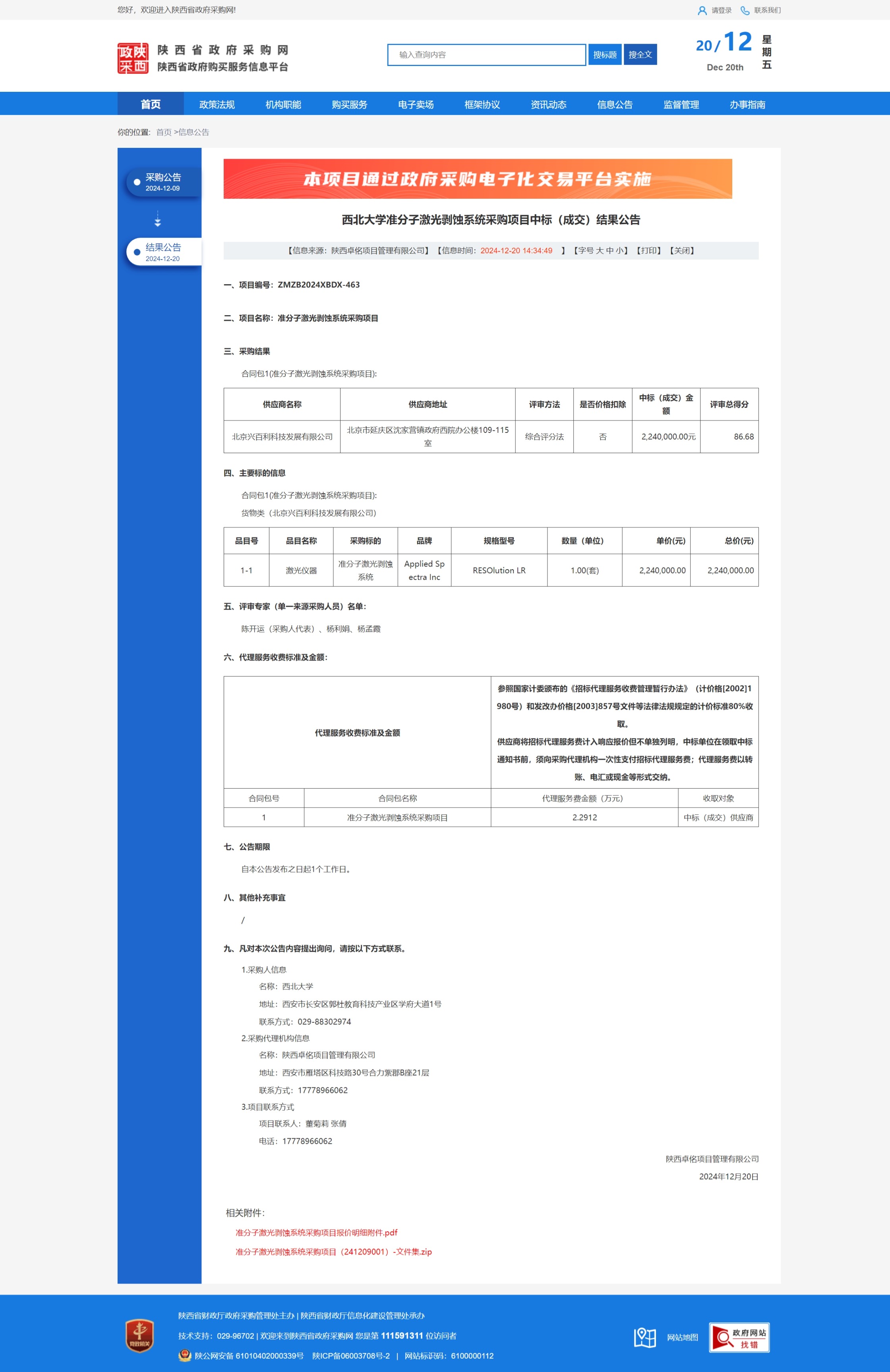 乐投平台准分子激光剥蚀系统采购项目中标(成交)结果公告 作者: 编辑:薛利娟 时间:2024-12-20 原 原公告链接:https://www.ccgp-shaanxi.gov.cn/freecms/site/shaanxi/ggxx/info/2024/8a69c44e9218572b0193e29f87ef1ad0.html?noticeType=001026¬iceId=25ebb152-be9e-11ef-8063-08c0eb20c666