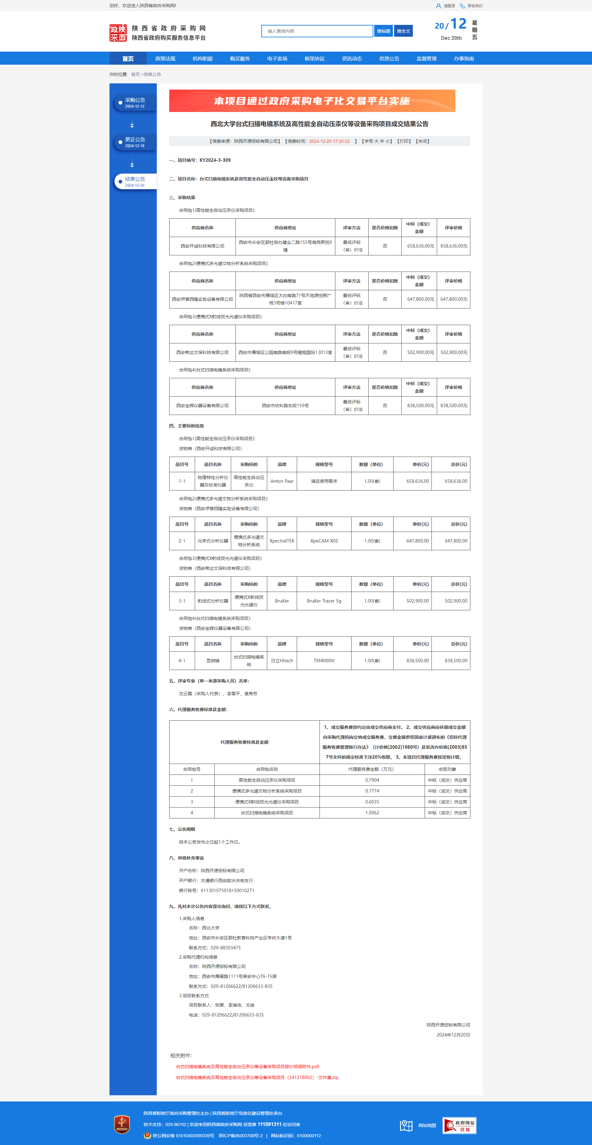 乐投平台台式扫描电镜系统及高性能全自动压汞仪等设备采购项目成交结果公告