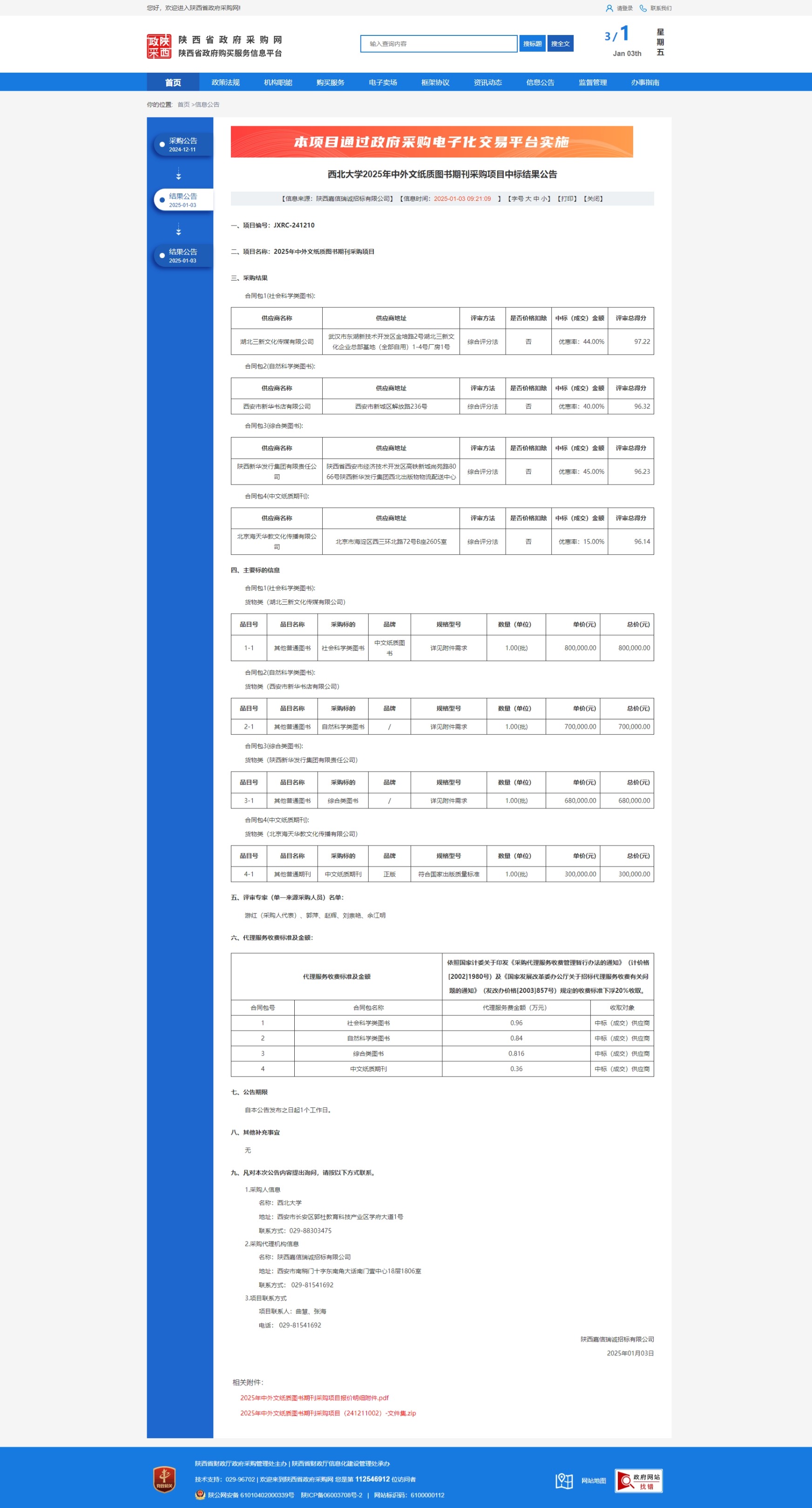 乐投平台2025年中外文纸质图书期刊采购项目中标结果公告 作者: 编辑:薛利娟 时间:2025-01-03 原公告链接:https://www.ccgp-shaanxi.gov.cn/freecms/site/shaanxi/ggxx/info/2025/8a69c95d921859f0019429b635ac1b8f.html?noticeType=001021¬iceId=ac9e64e8-c972-11ef-8063-08c0eb20c666