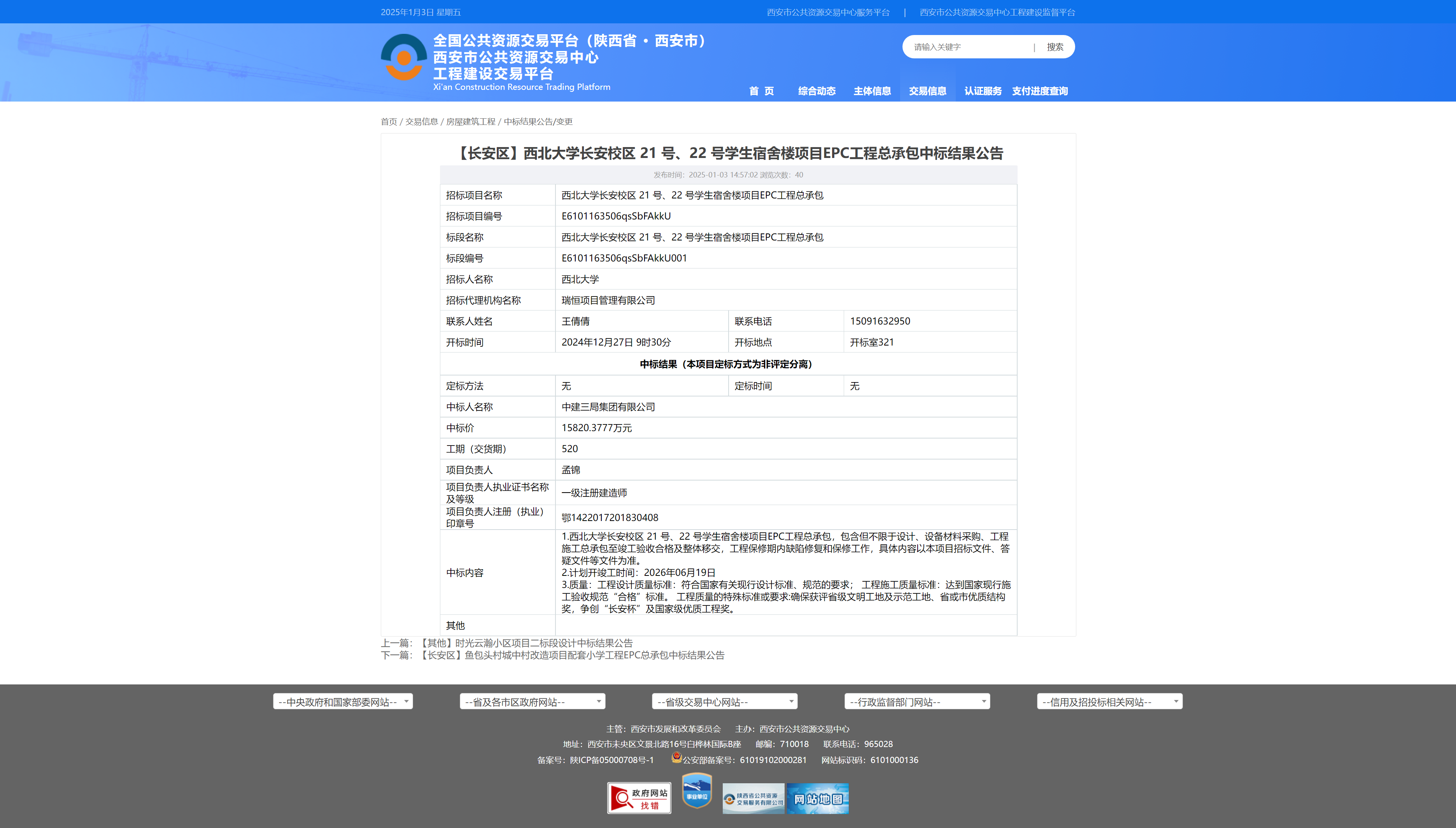 乐投平台长安校区21号、22号学生宿舍楼项目EPC工程总承包中标结果公告
