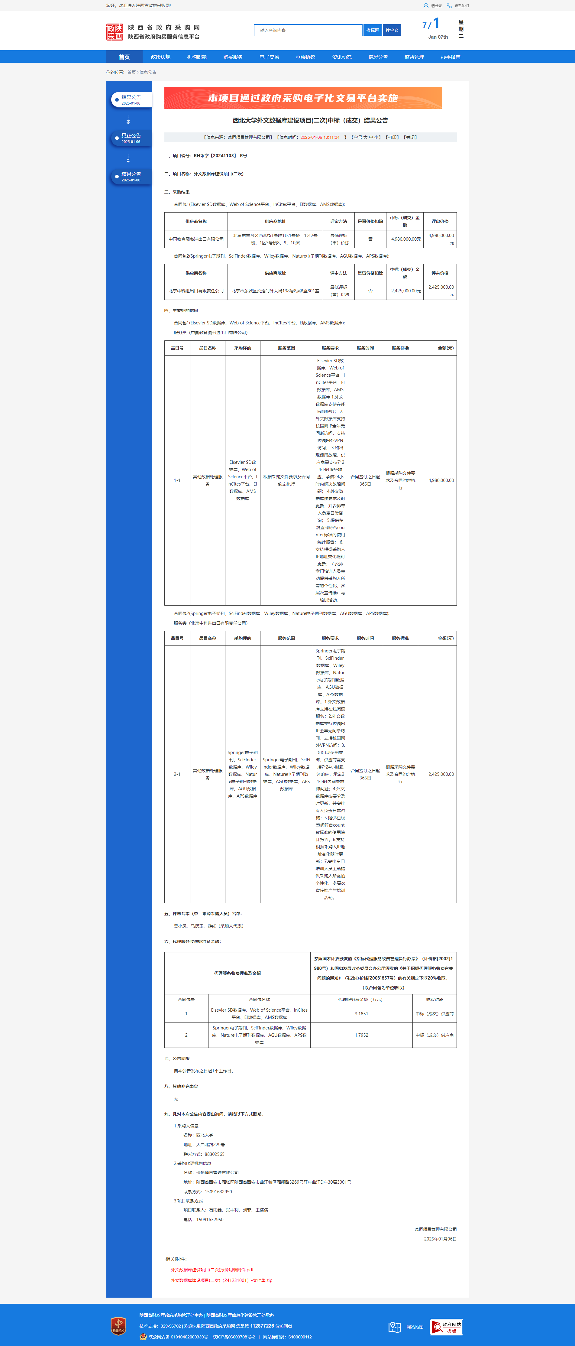 乐投平台外文数据库建设项目(二次)中标(成交)结果公告